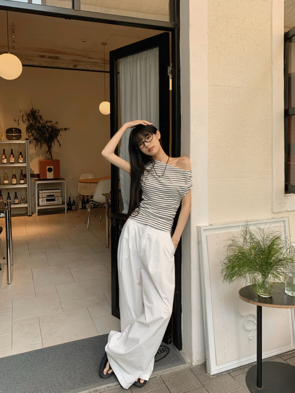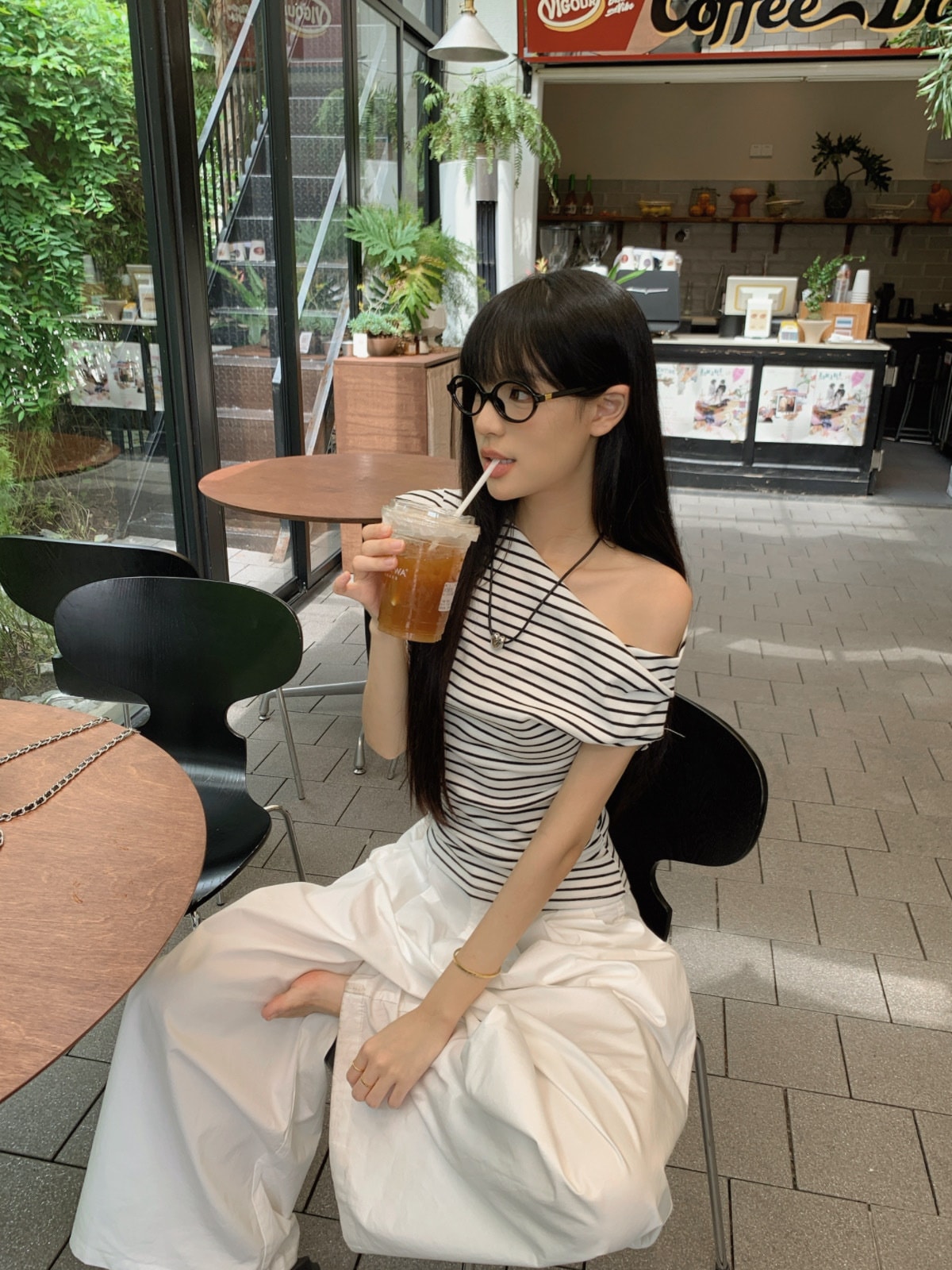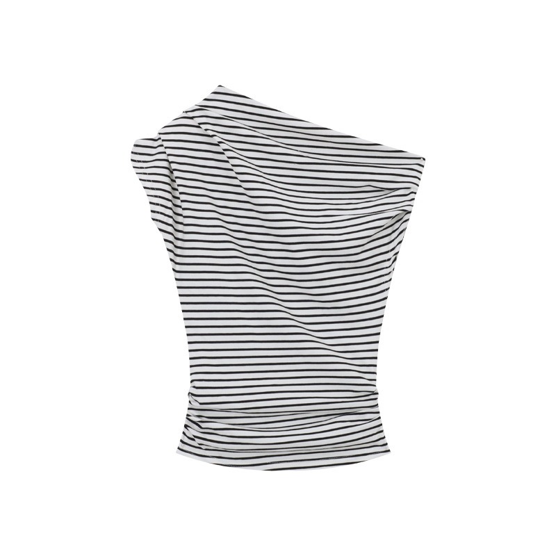 标题:2025 春夏ボーダー トップス 薄手 ワンショルダー ボーダートップス ボーダーTシャツ オフショル オフショルダー 半袖 レトロ