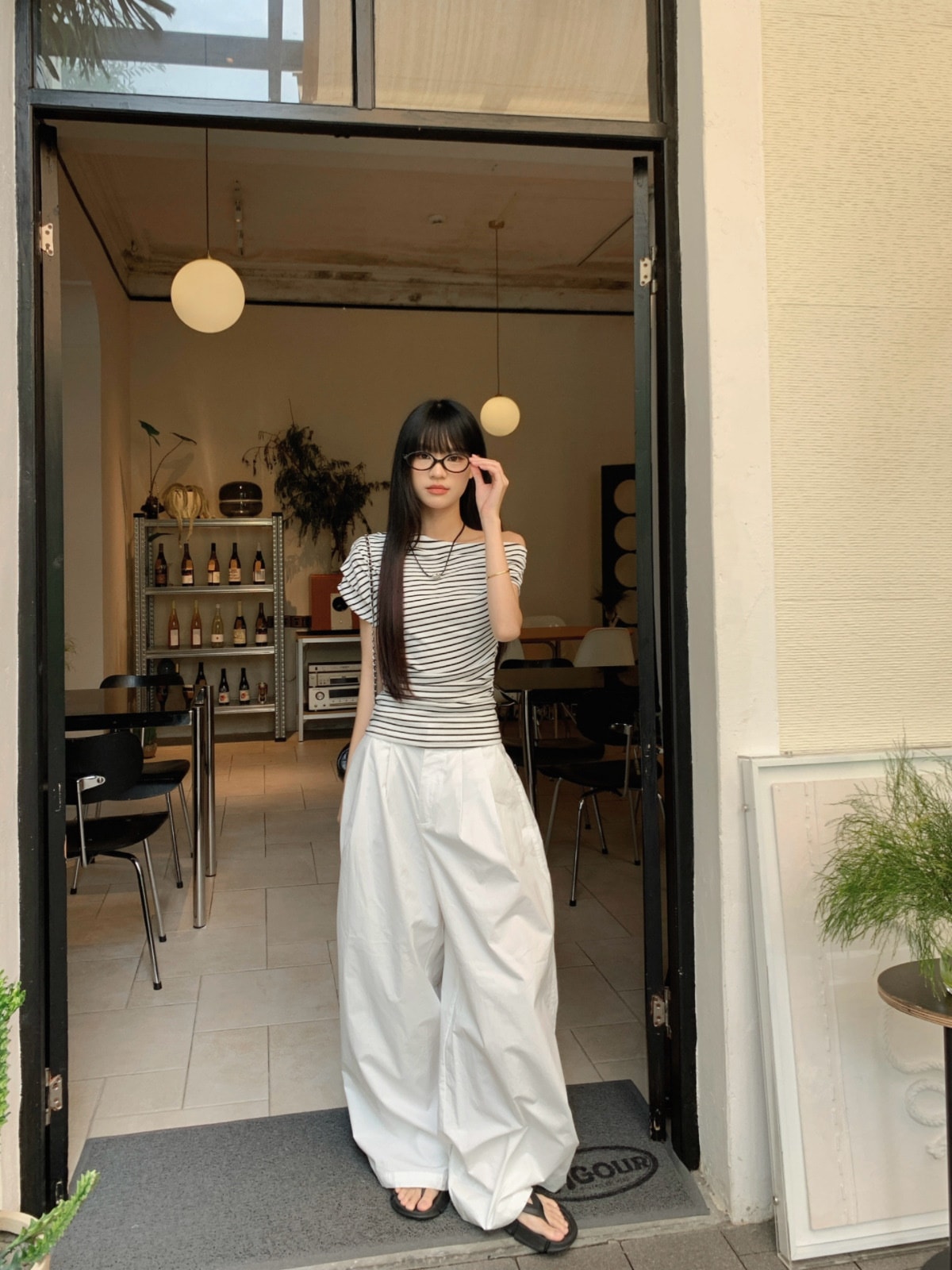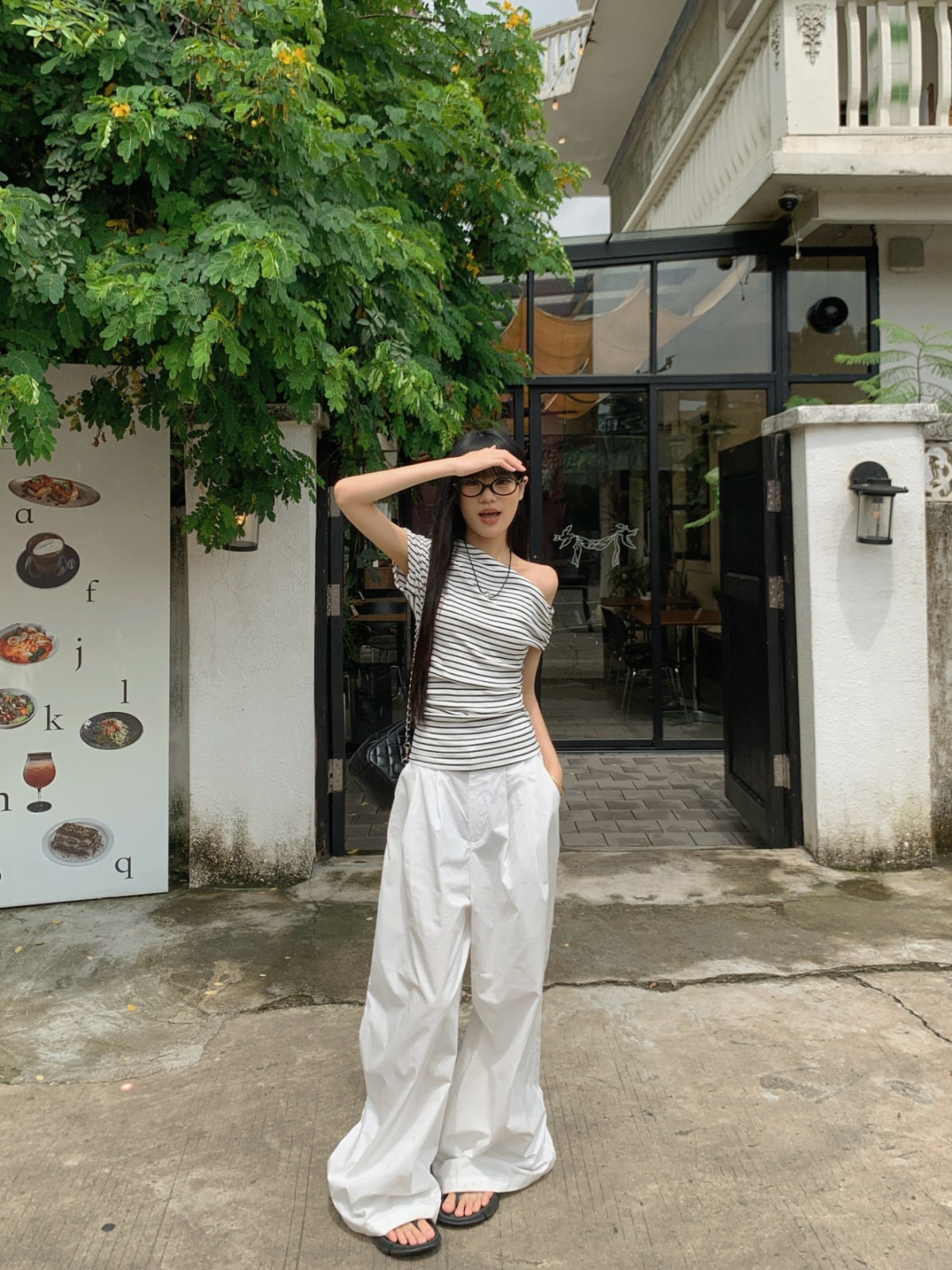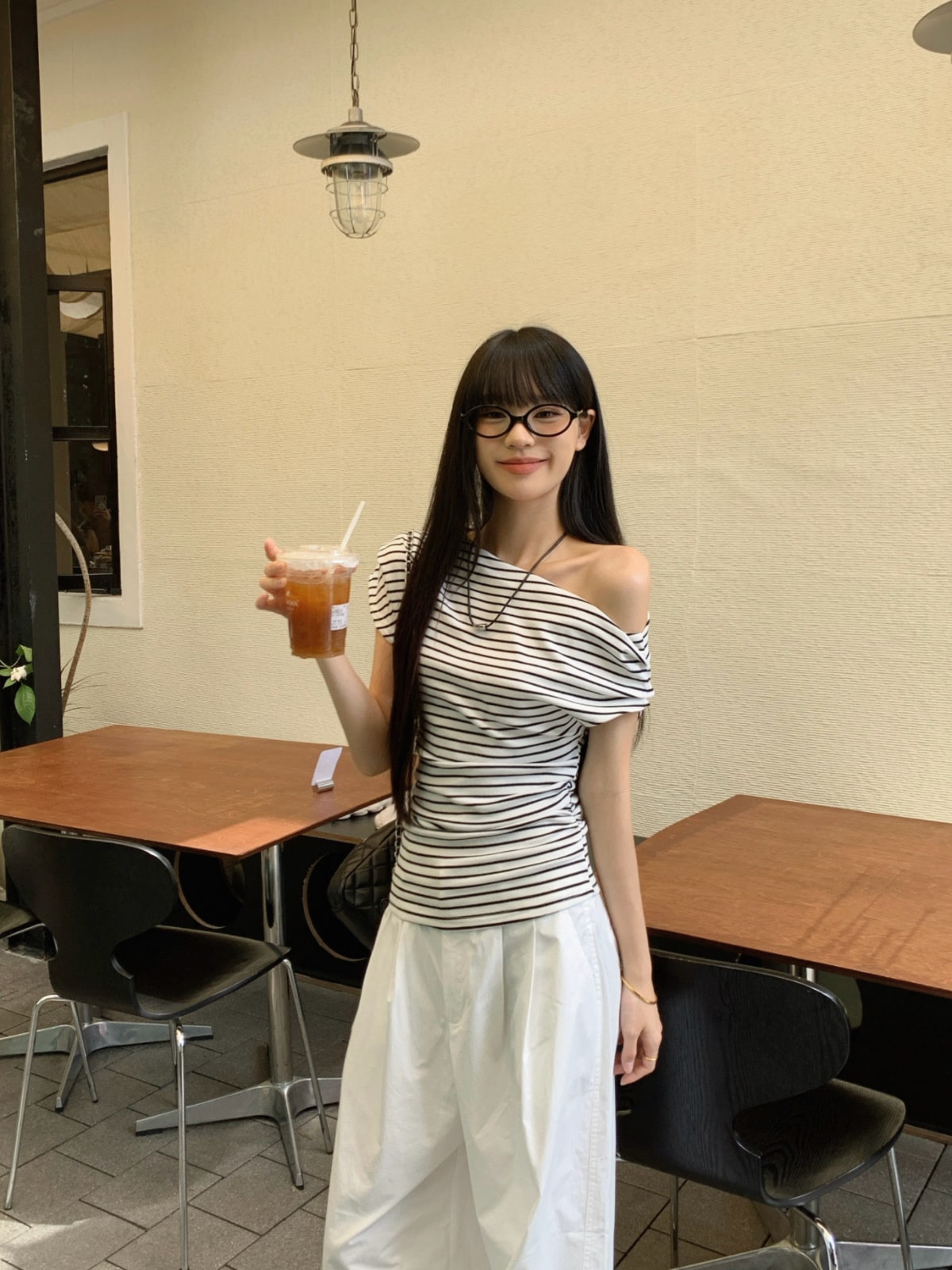 标题:2025 春夏ボーダー トップス 薄手 ワンショルダー ボーダートップス ボーダーTシャツ オフショル オフショルダー 半袖 レトロ