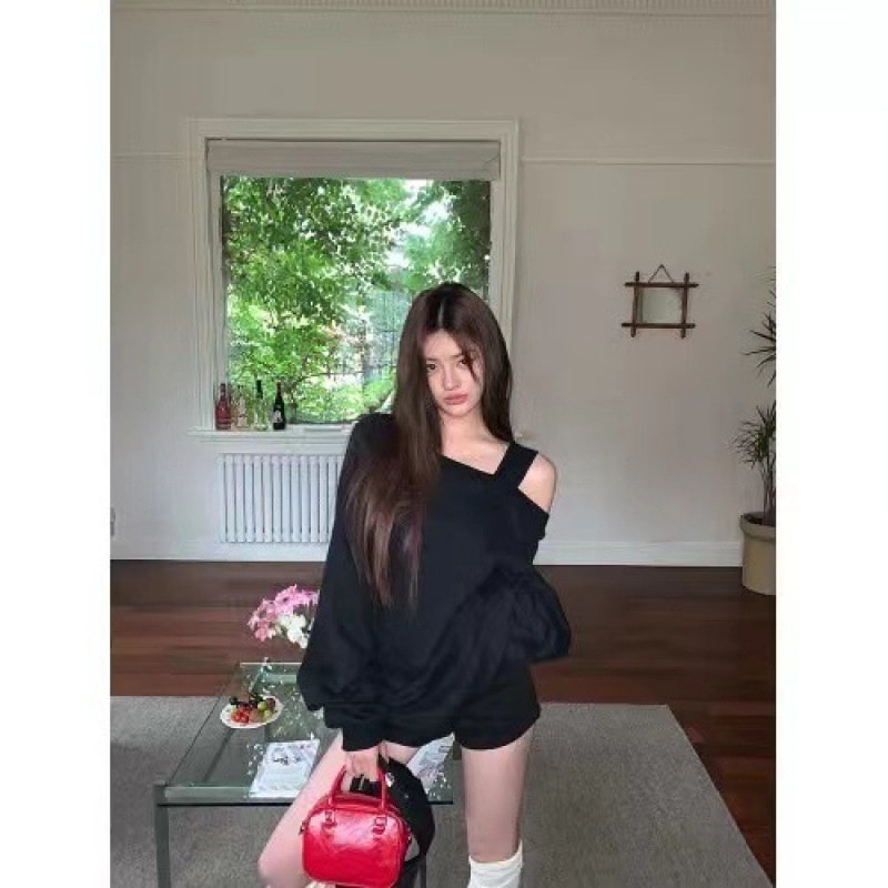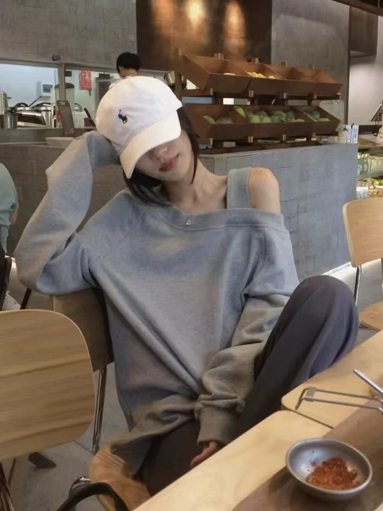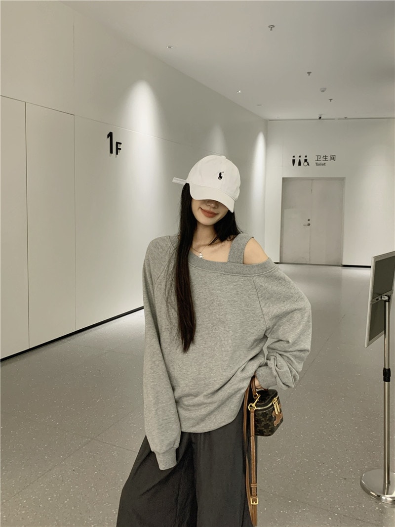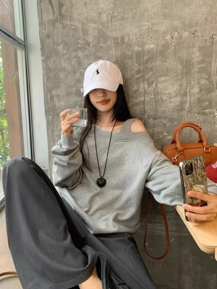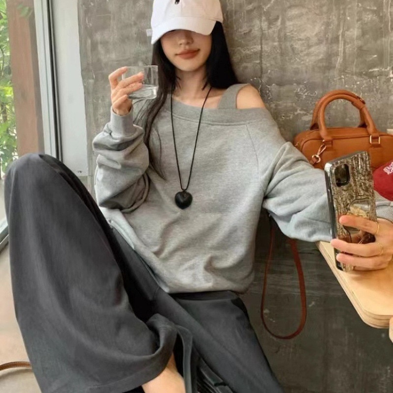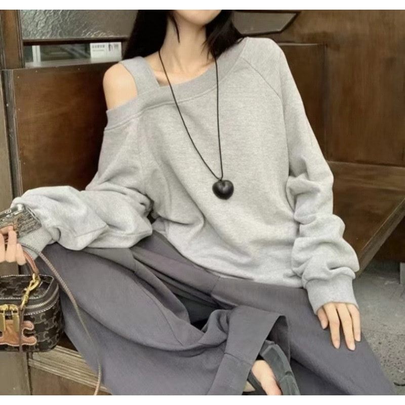 标题:2025 春夏ワンショルダー スウェット 薄手 トップス オーバーサイズ トレーナー ショルダーストラップ プルオーバー 長袖 レトロ