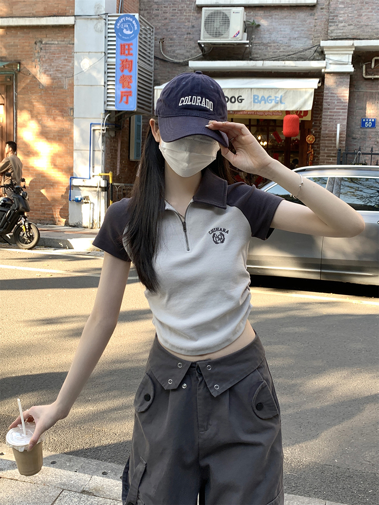标题:2025春夏 Tシャツ レディース 半袖 韓国風 プリント ショート丈 トップス スポーツミックスストリートバイカラーおしゃれ系ラウンドネックスリーブカジュアル大人可愛いスポーティー配色ハーフT