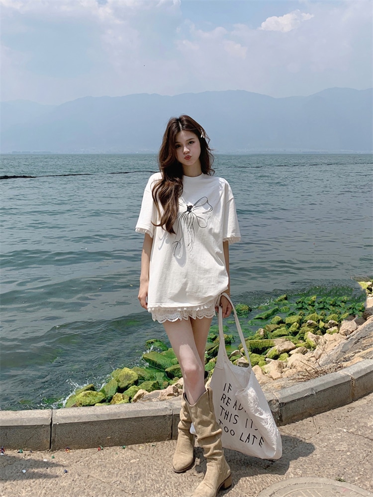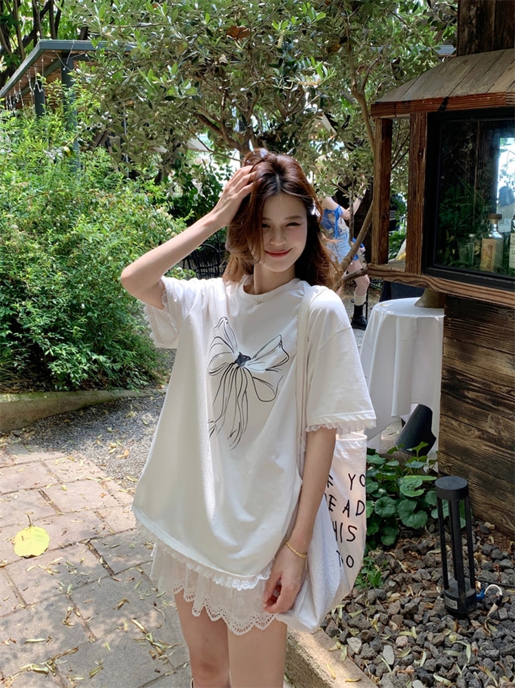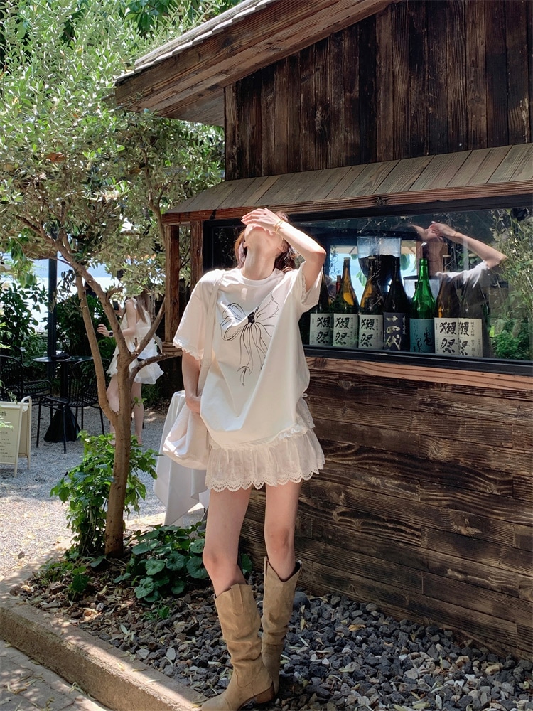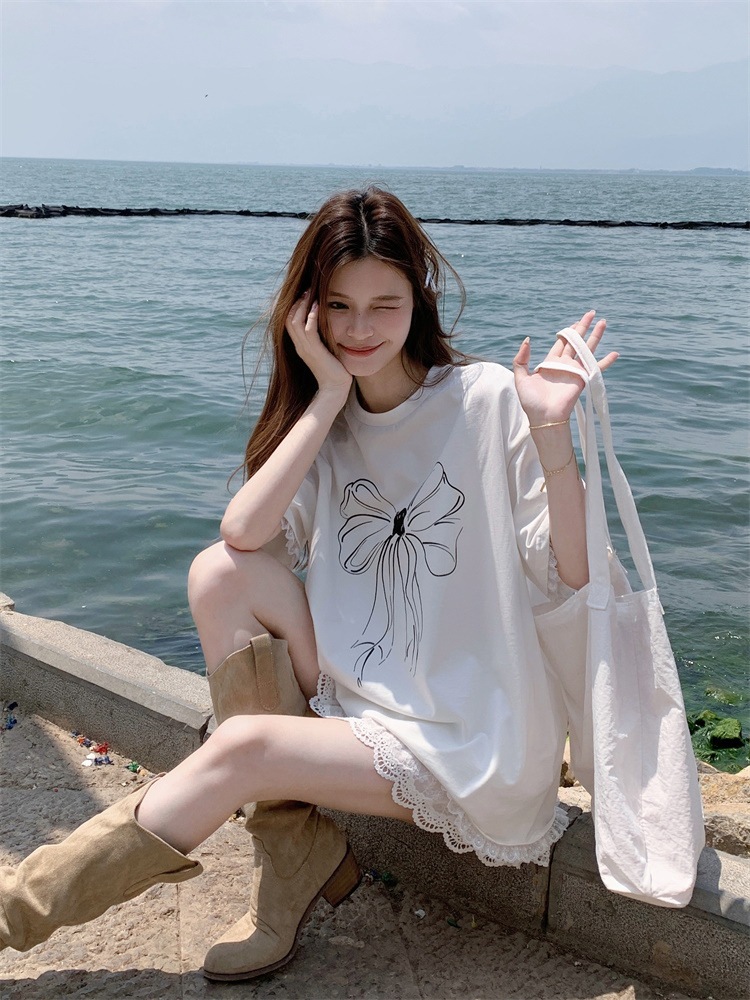 标题:2025 春夏トップス 半袖 Tシャツ 韓国 レイヤード風 ショート丈 着痩せスリムかわいいフレンチセクシーラウンドネックおしゃれスリーブカジュアルコーデファッション系レディースお出かけ T