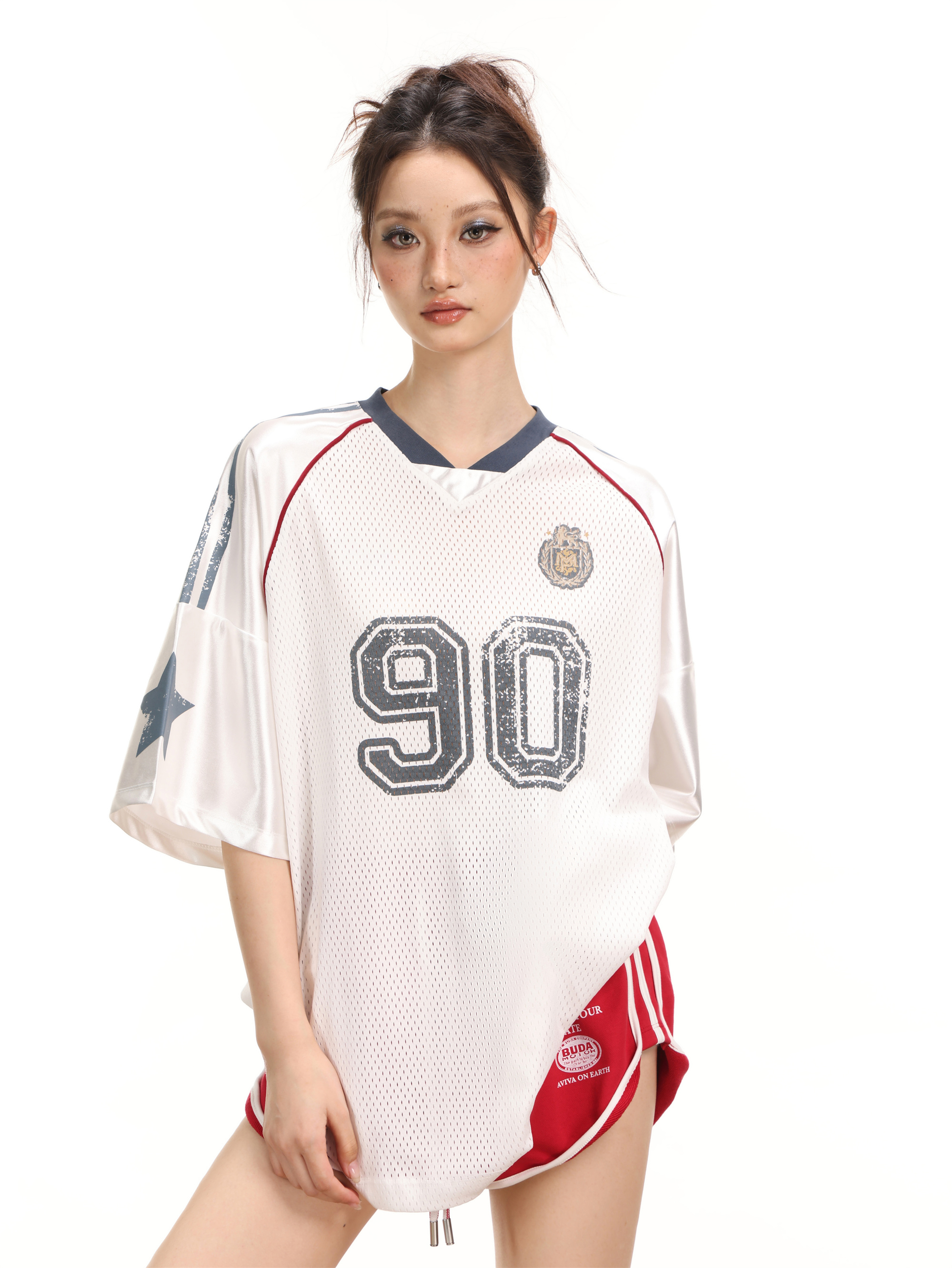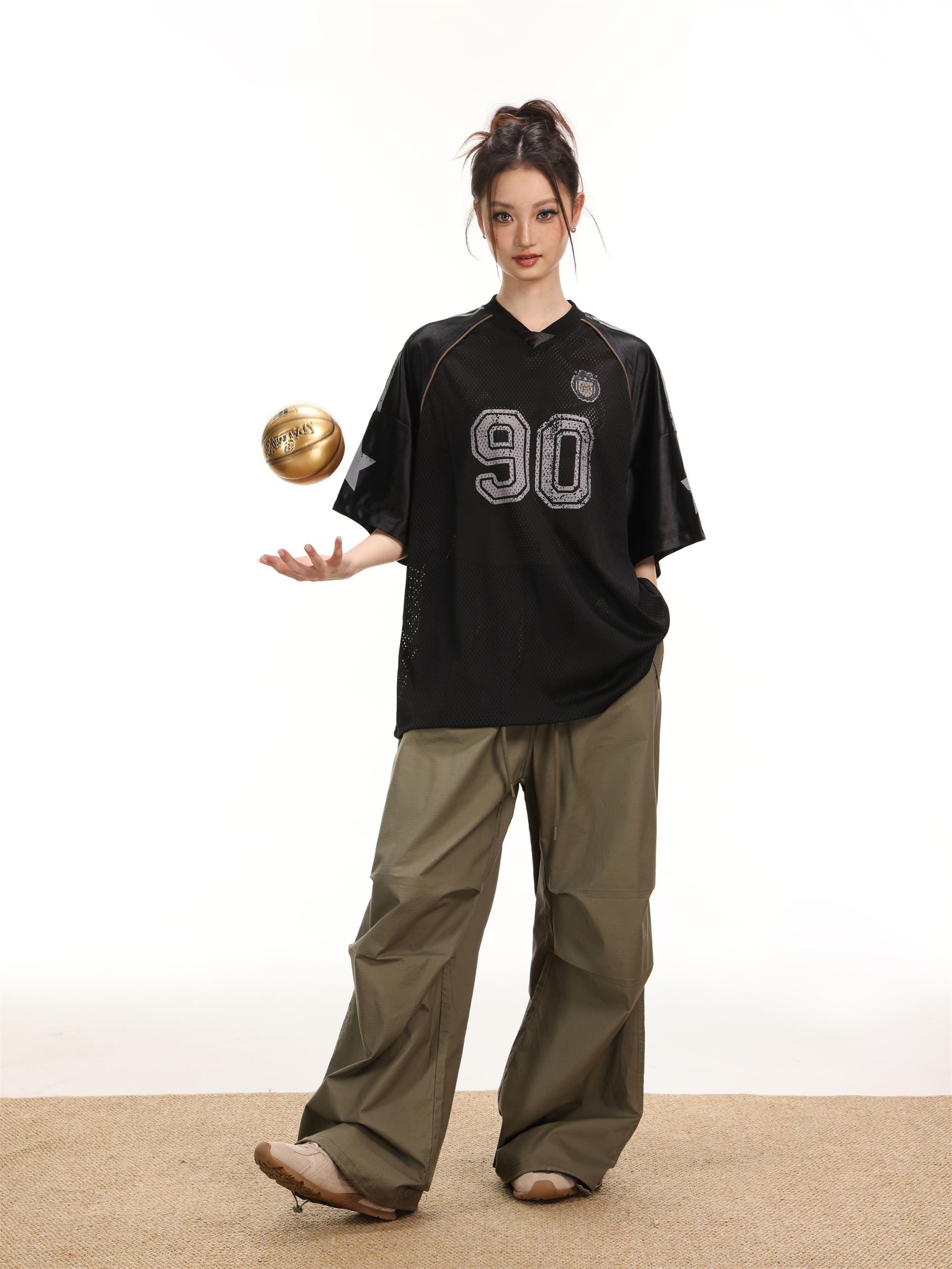 标题:2025春夏 韓国可愛い風トップス Tシャツ K-POPファッション半袖ストリート系サイド丈フットシルエットダンスラグランゆったりシャツ衣装レディースサイズVネックおしゃれカジュアル春配色T