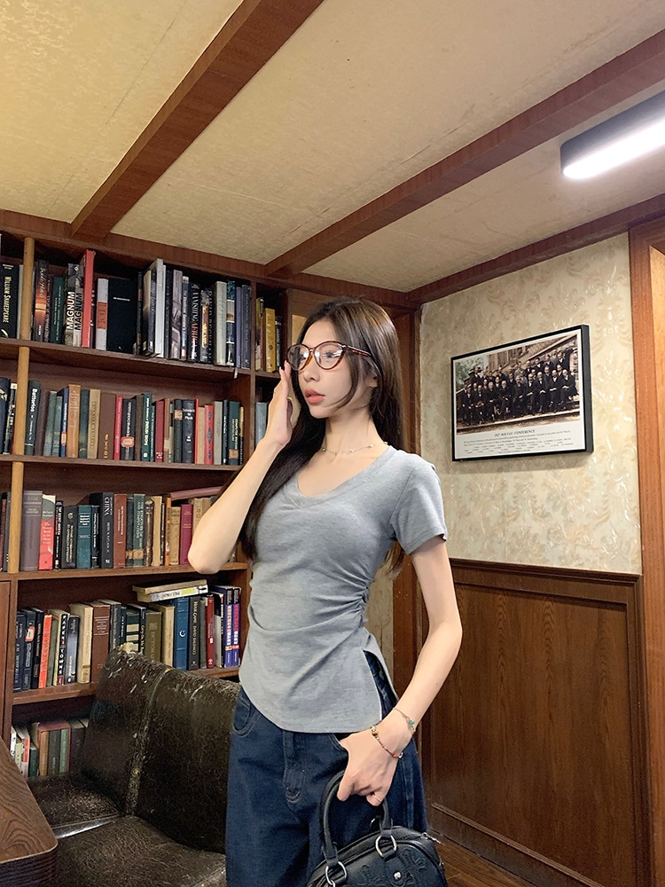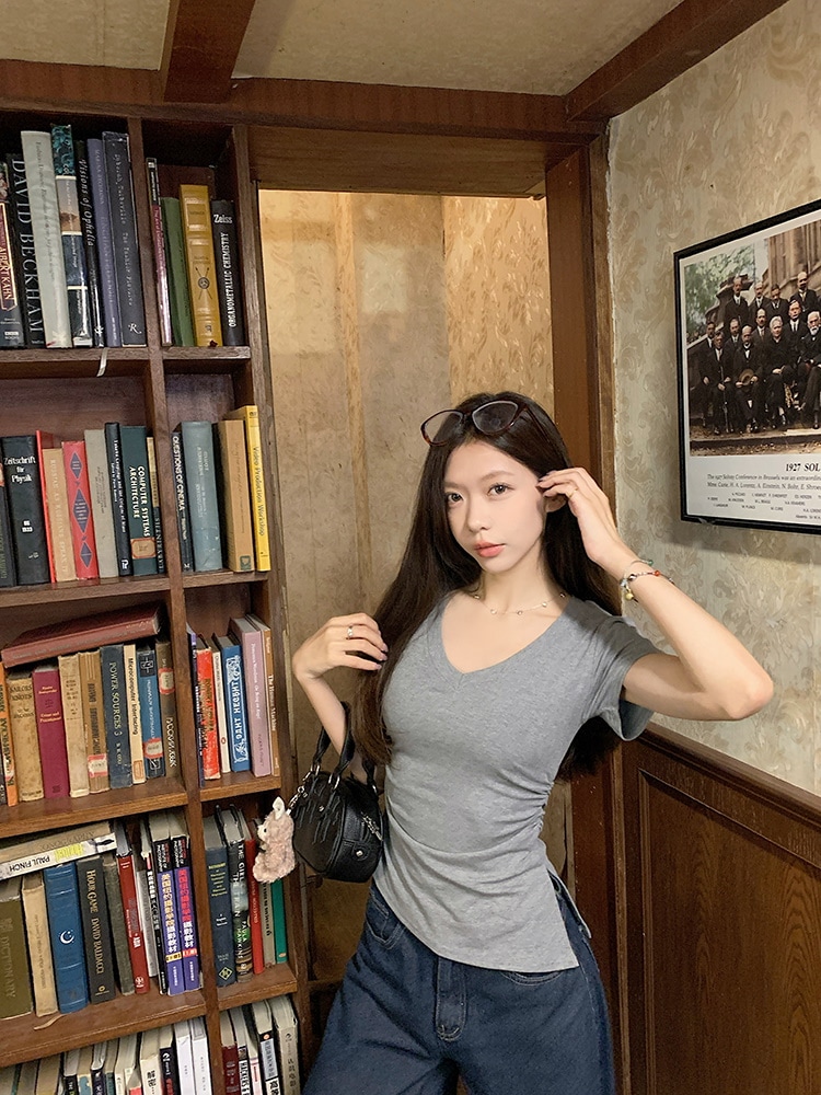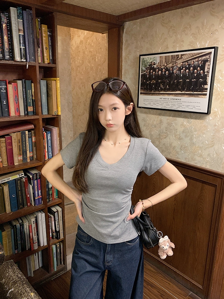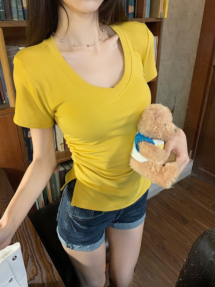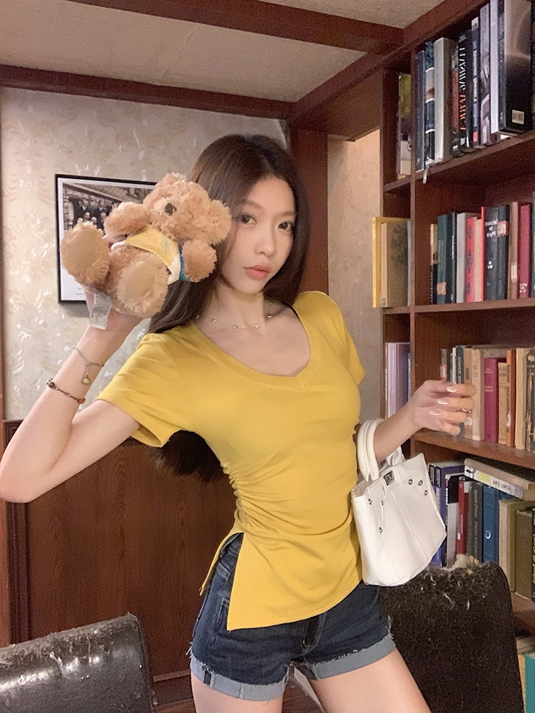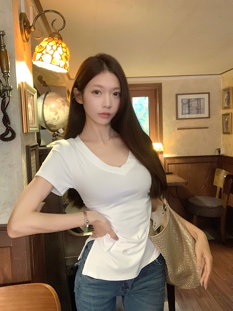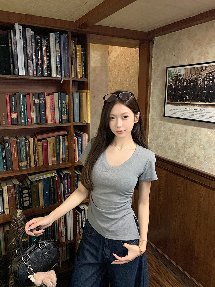 标题:2025春夏 韓国可愛い風トップス Tシャツ K-POPファッション半袖ストリート系サイド丈フットシルエットダンスラグランゆったりシャツ衣装レディースサイズVネックおしゃれカジュアル春配色T
