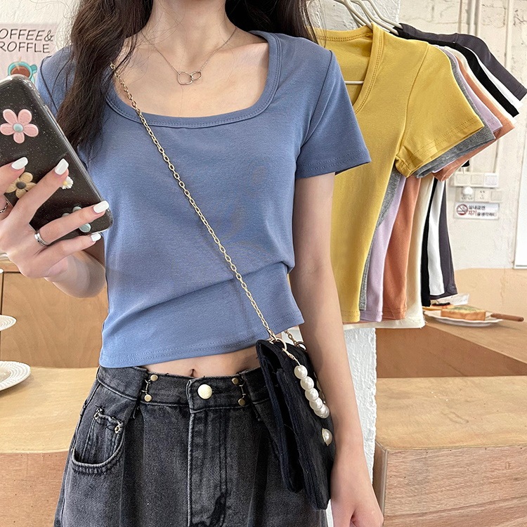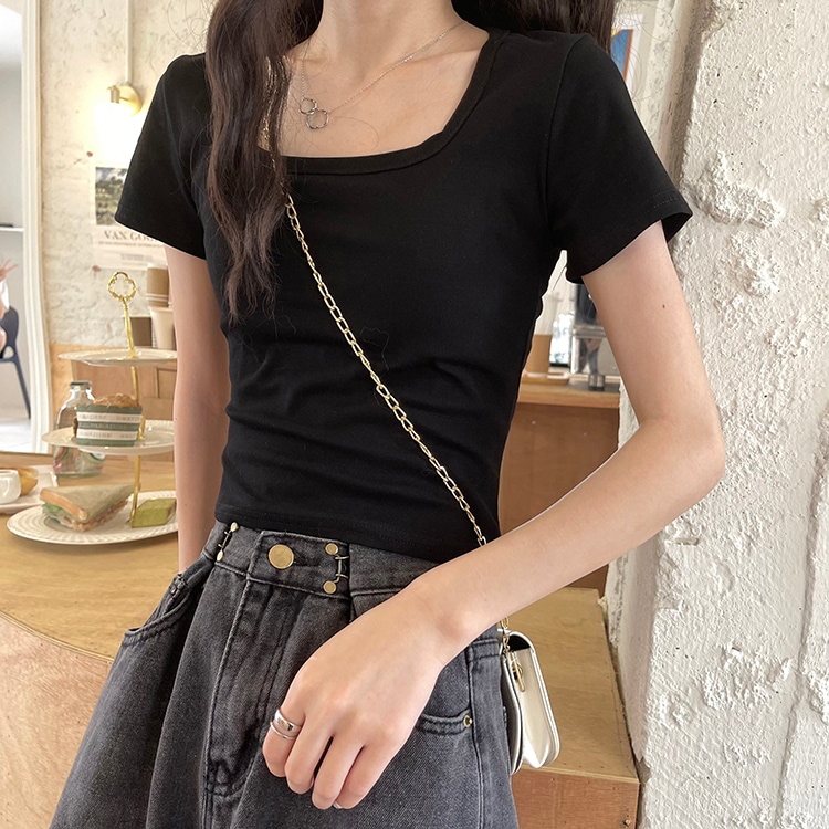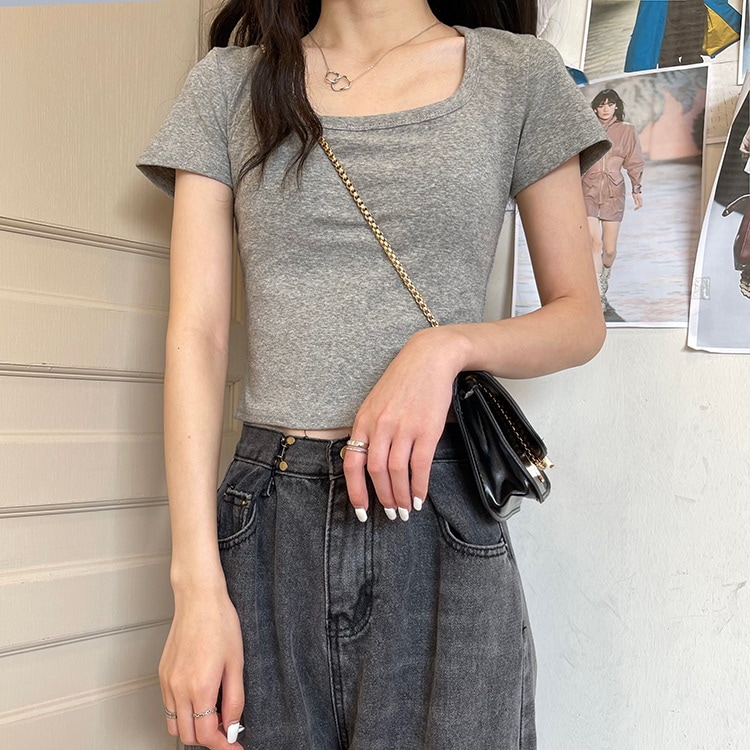 标题:2025 春夏トップス 半袖 Tシャツ 韓国 レイヤード風 ショート丈 着痩せスリムかわいいフレンチセクシーラウンドネックおしゃれスリーブカジュアルコーデファッション系レディースお出かけ T