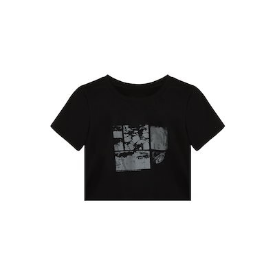 标题:2025春夏 Tシャツ レディース 半袖 韓国風 フォトグラフィック プリント ショート丈 トップス ストリートバイカラーおしゃれ系ラウンドネックスリーブカジュアル大人可愛い 配色 T