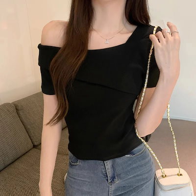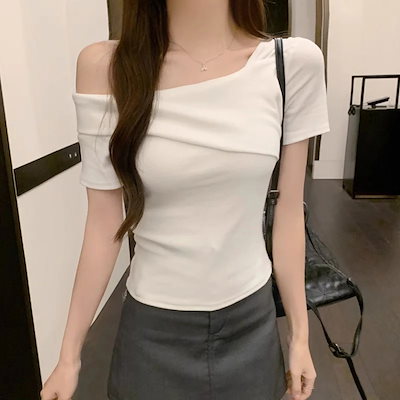 标题:2025 春夏 トップス Tシャツ 3色展開丈 かわいい ラウンドネック おしゃれ 着痩せ ファッション系レディースお出かけ スリムフレンチセクシースリーブカジュアルコーデ T