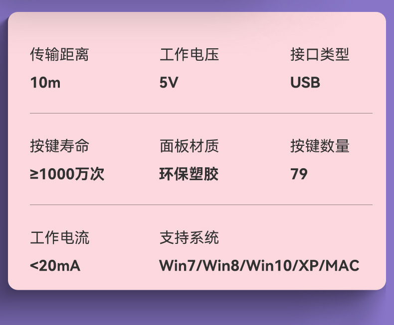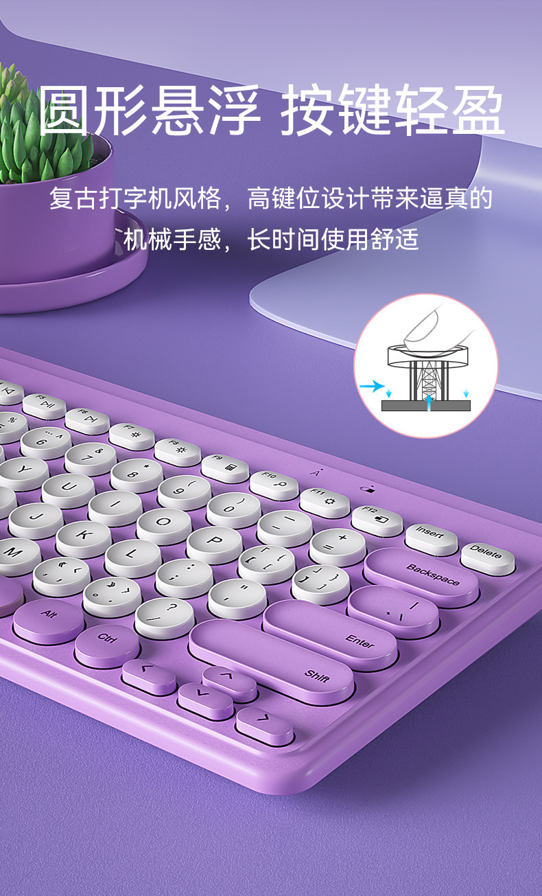 属性:熏衣紫(无线单键盘),熏衣紫(无线键鼠套装),可爱粉(无线单键盘),可爱粉(无线键鼠套装),复古绿(无线单键盘),复古绿(无线键鼠套装),柠檬黄(无线单键盘),柠檬黄(无线键鼠套装),珍珠白(无线单键盘),珍珠白(无线键鼠套装),绅士黑(无线单键盘),绅士黑(无线键鼠套装),珍珠白(有线单键盘),绅士黑(有线单键盘)