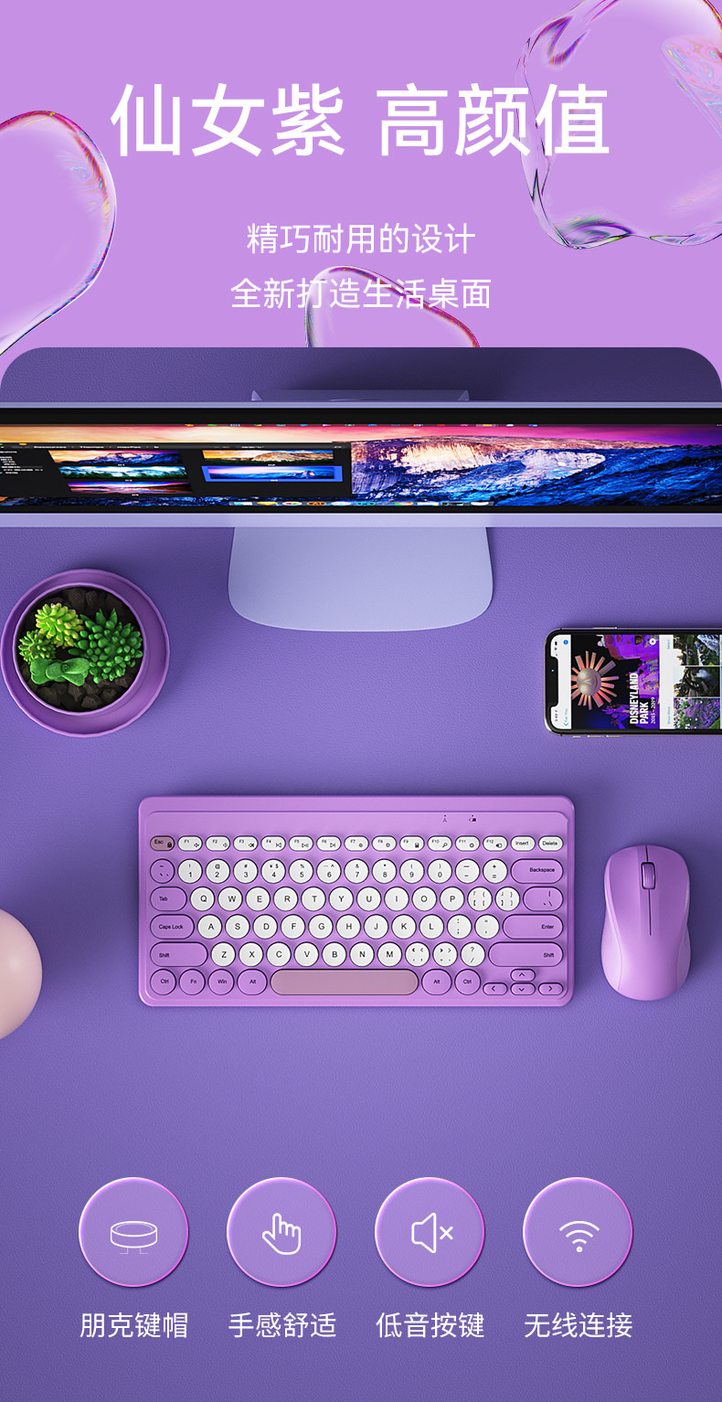 描述:品牌:B.O.W,型号:MK610,货号:000032,上市时间:2021,货源类别:现货,适用机型:台式机,类型:无线键盘,键数:79,接口:USB,是否支持即插即用:支持,与电脑连接方式:无线,是否有多媒体功能键:有,快捷键:有,有无手托:无,防水功能:不支持防水,按键技术:火山口架构,背光功能:无背光,是否支持人体工程学:支持,材质:ABS,线长:0,产品尺寸:301.5mm x (W) 146.0mm x (H) 21 mm,产品重量:0.606kg,加印LOGO:可以,是否支持一件代发:不支持,最快出货时间:30天以上,发票:提供发票,售后服务:店面三包,包装清单:键盘*1 鼠标*1 干电池*2 说明书*1,颜色:熏衣紫(无线单键盘),熏衣紫(无线键鼠套装),可爱粉(无线单键盘),可爱粉(无线键鼠套装),复古绿(无线单键盘),复古绿(无线键鼠套装),柠檬黄(无线单键盘),柠檬黄(无线键鼠套装),珍珠白(无线单键盘),珍珠白(无线键鼠套装),绅士黑(无线单键盘),绅士黑(无线键鼠套装),珍珠白(有线单键盘),绅士黑(有线单键盘),主要下游平台:ebay,亚马逊,wish,速卖通,独立站,LAZADA,主要销售地区:非洲,欧洲,南美,东南亚,北美,东北亚,中东,有可授权的自有品牌:是,是否跨境出口专供货源:是,支持订制:支持,是否专利货源:否,无线键鼠:无线键鼠,键盘鼠标:键盘鼠标,键鼠套装:键鼠套装,