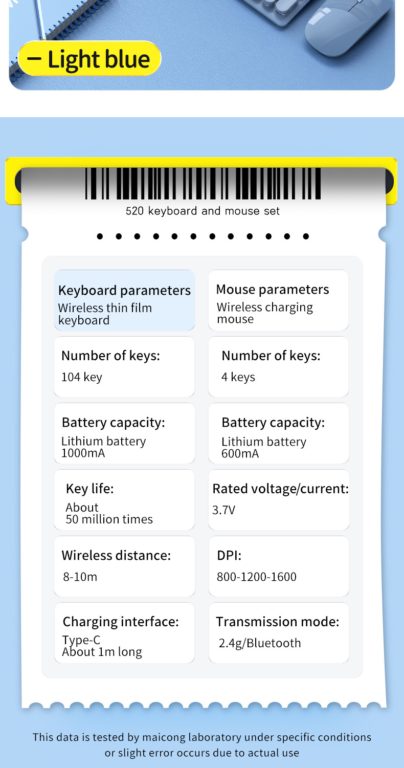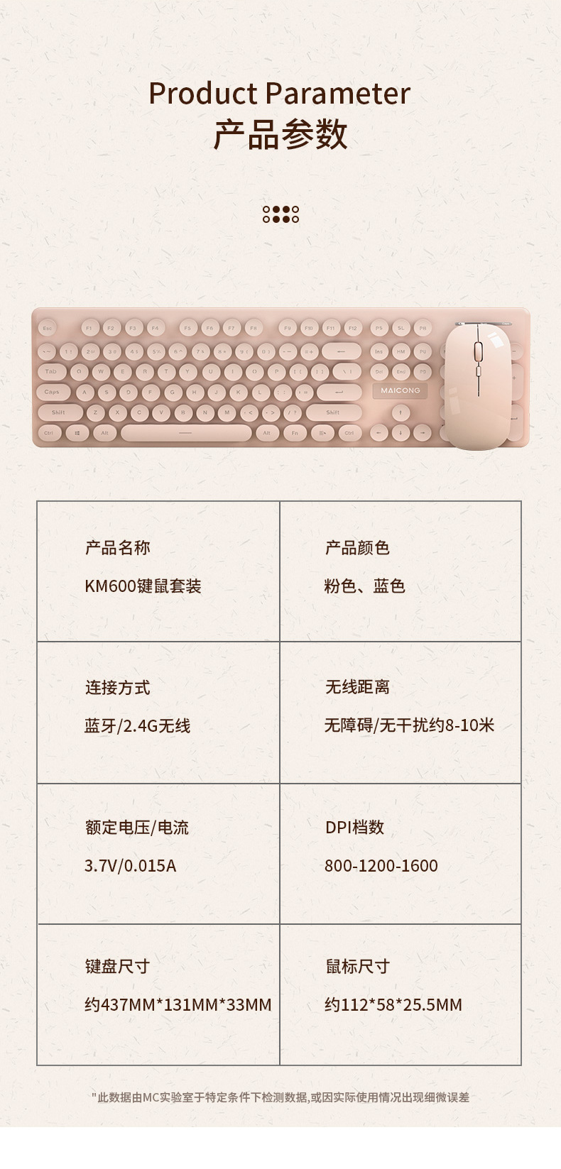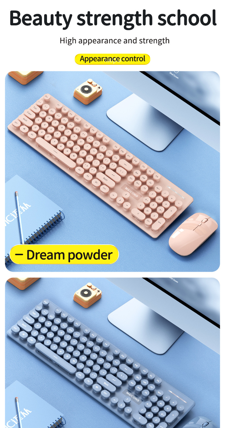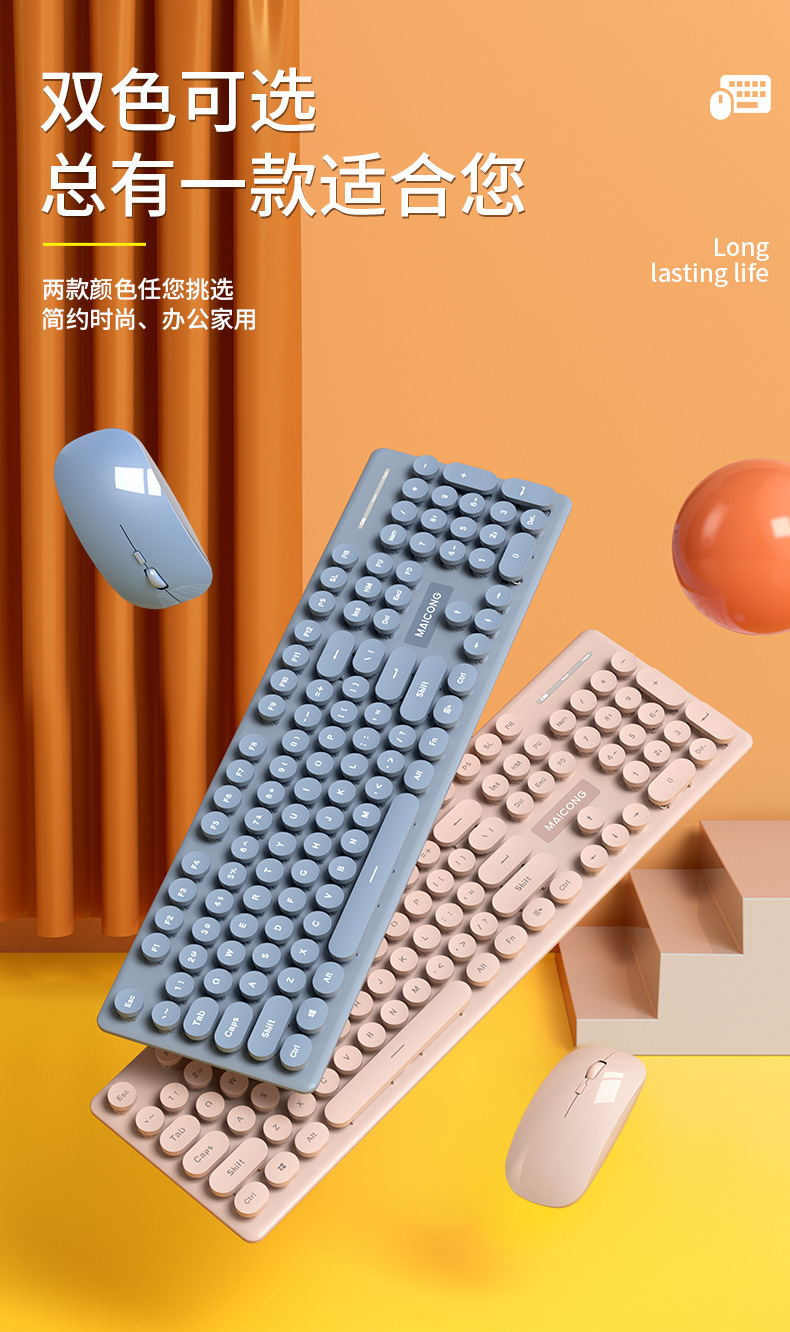 描述:品牌:迈从,套装型号:km600 键鼠套装,货号:km600 键鼠套装,上市时间:2021,货源类别:现货,类型:无线套装,与电脑连接方式:键盘无线,鼠标无线,键盘接口:USB,鼠标接口:USB,工作方式:光电,光电分辨率:1600dpi,是否支持即插即用:支持,是否有多媒体功能键:有,是否支持人体工程学:支持,特性:支持防水,适用对象:笔记本,家用,游戏,办公用,产品尺寸:527*140*39mm,产品重量:0.85,加印LOGO:可以,加工定制:是,最快出货时间:1-3天,是否支持一件代发:支持,是否支持代理加盟:支持,发票:提供发票,售后服务:店铺三包,包装清单:键盘 鼠标 充电线 说明书 包装盒,颜色:淡蓝色,梦幻粉,主要下游平台:ebay,亚马逊,wish,速卖通,独立站,LAZADA,主要销售地区:非洲,欧洲,南美,东南亚,北美,东北亚,中东,有可授权的自有品牌:是,是否跨境出口专供货源:是,是否专利货源:否,