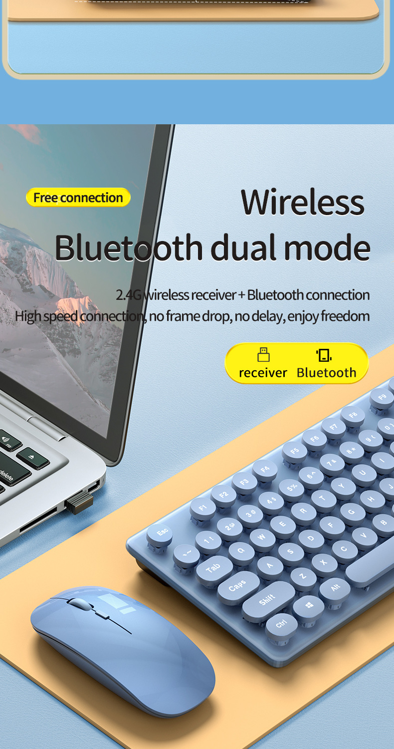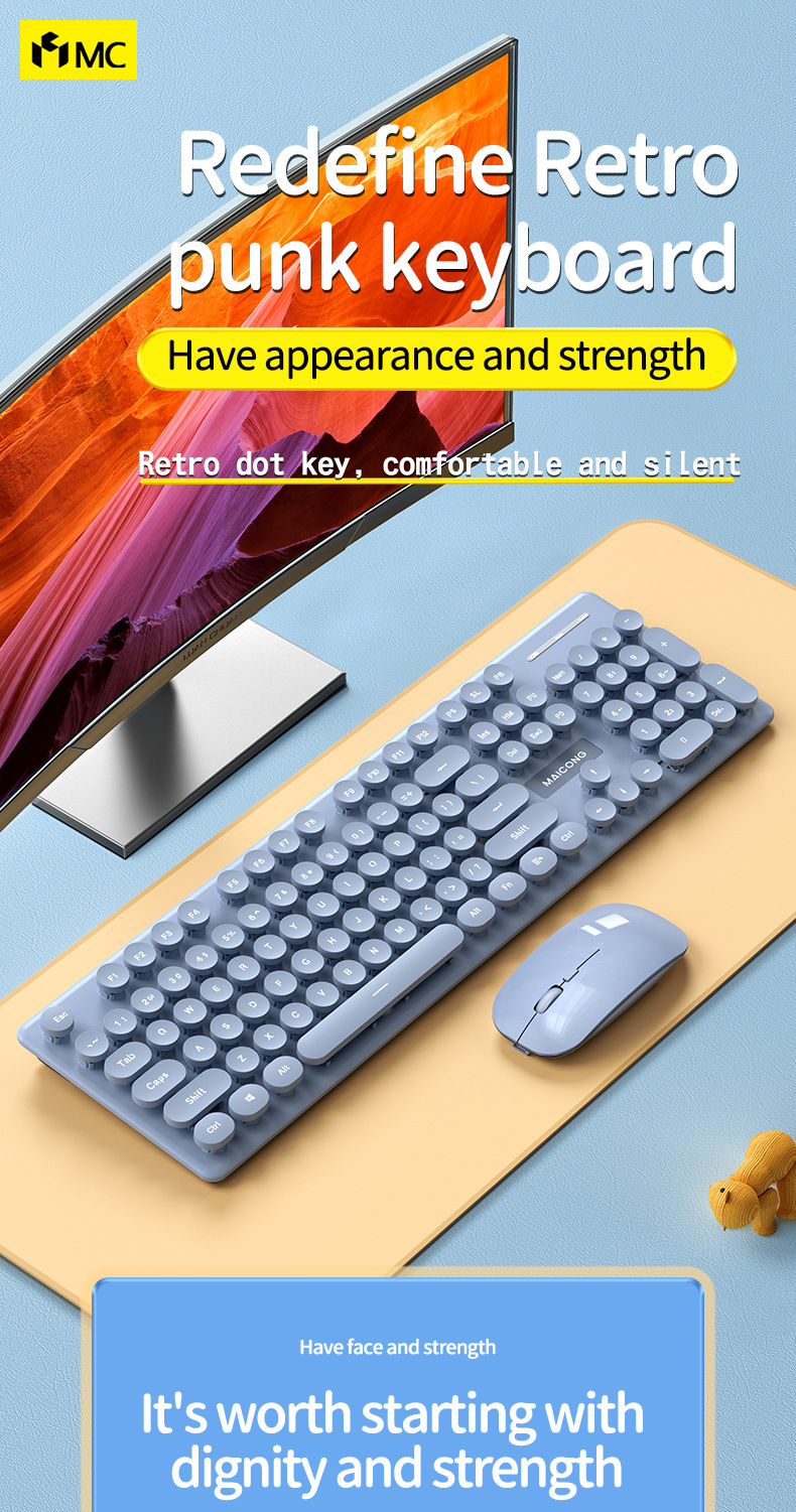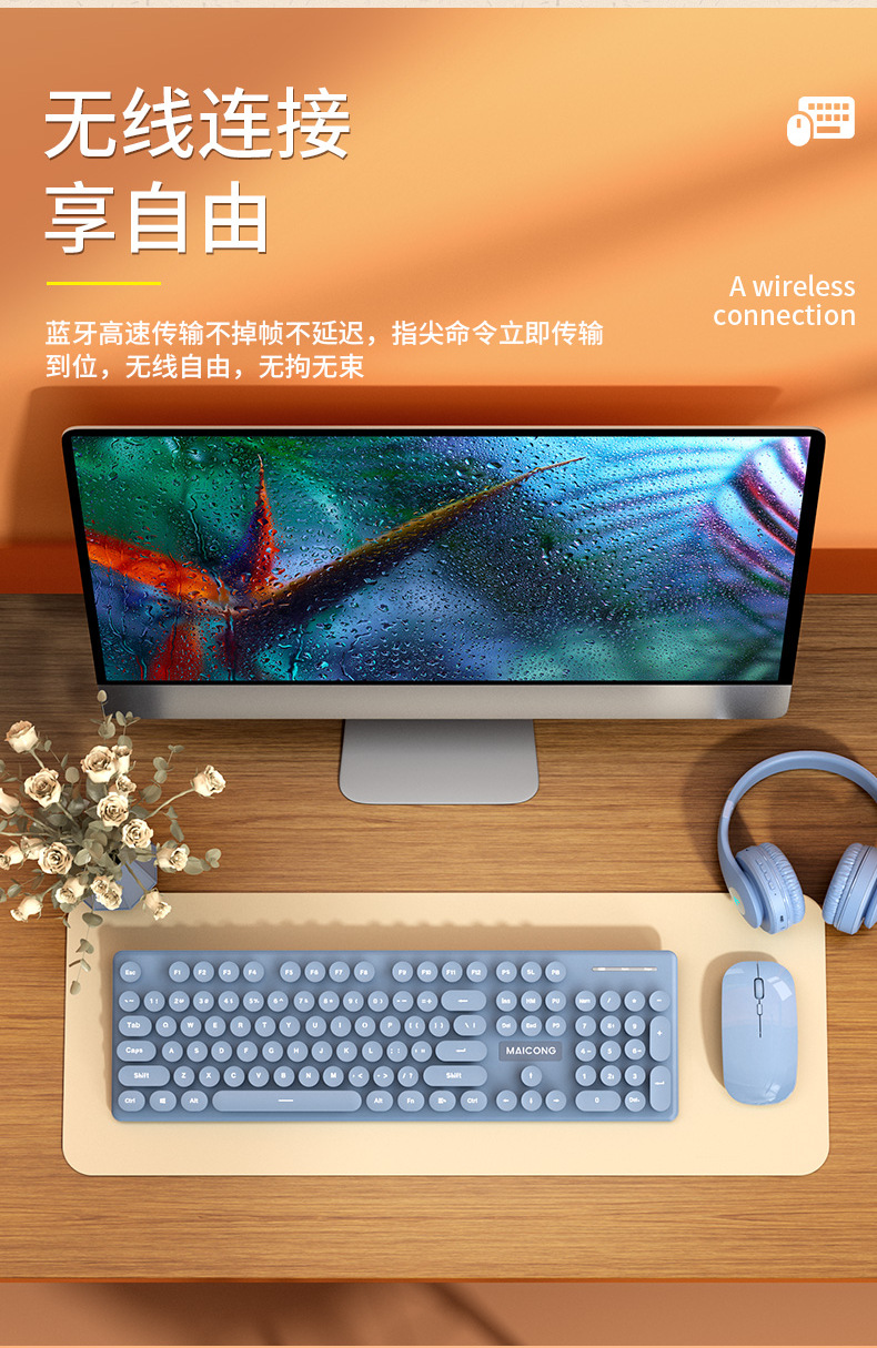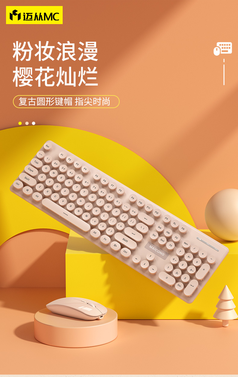 标题:迈从mc跨境新品无线2.4G蓝牙双模充电键盘鼠标套装莫兰迪键鼠套装