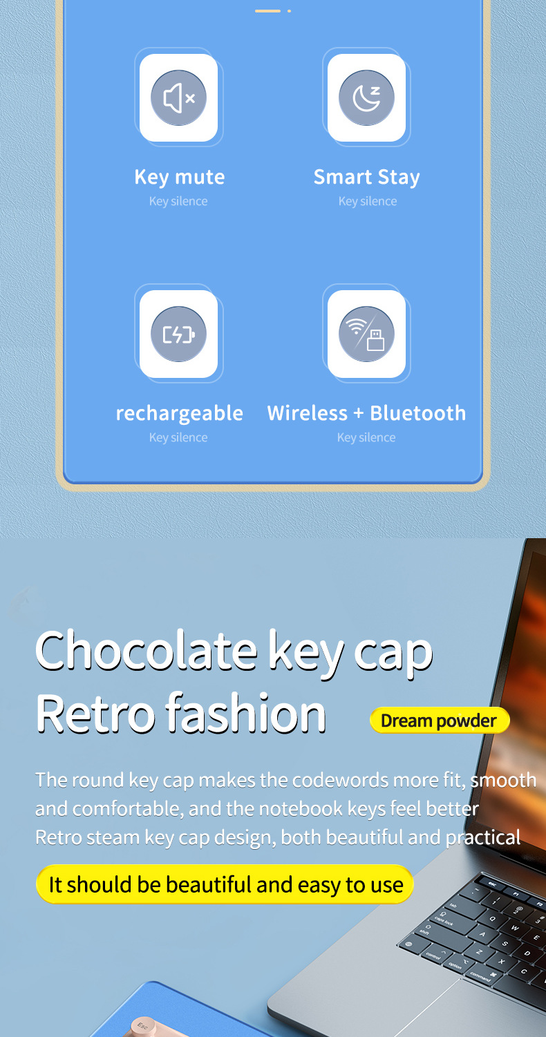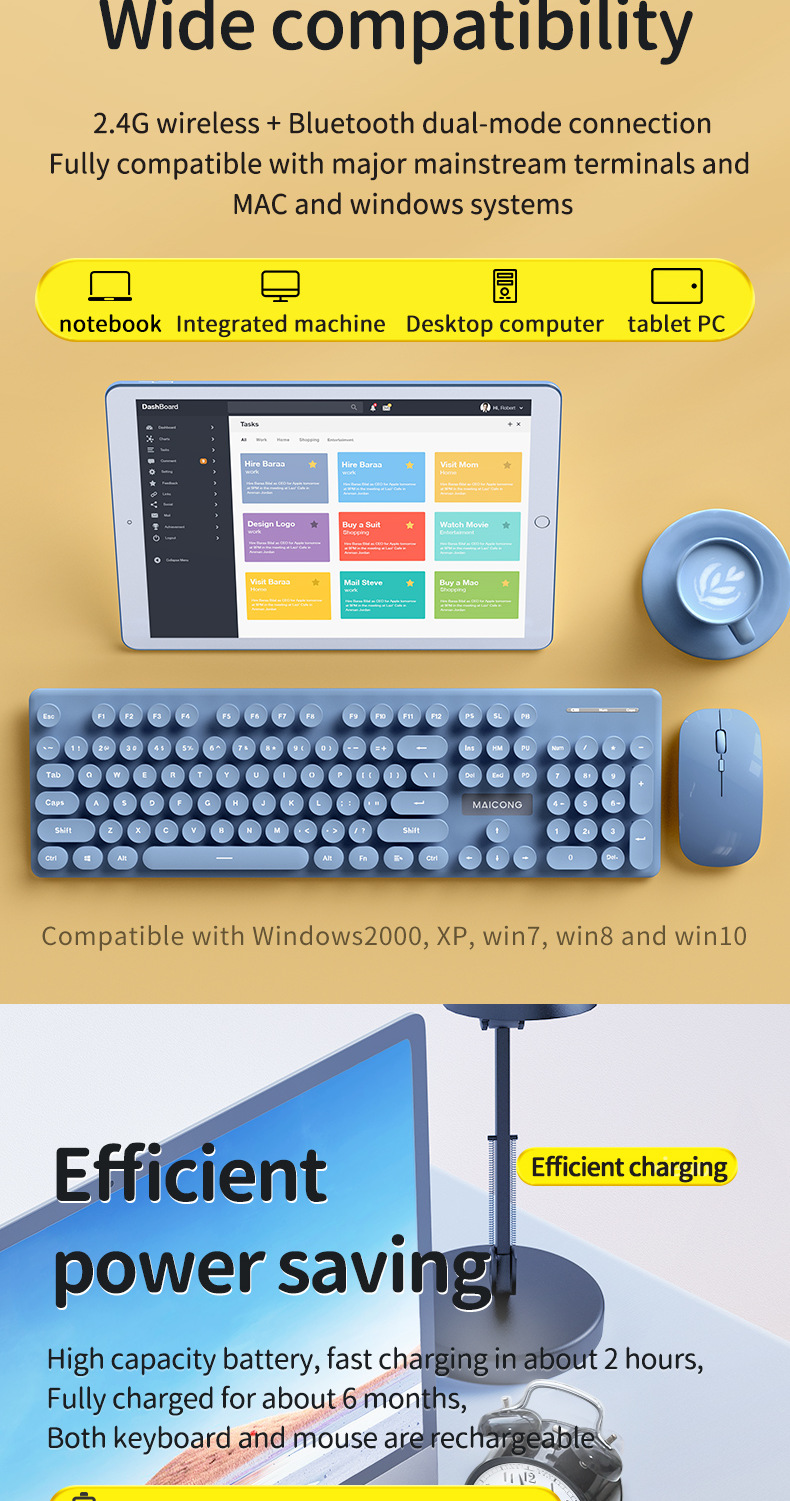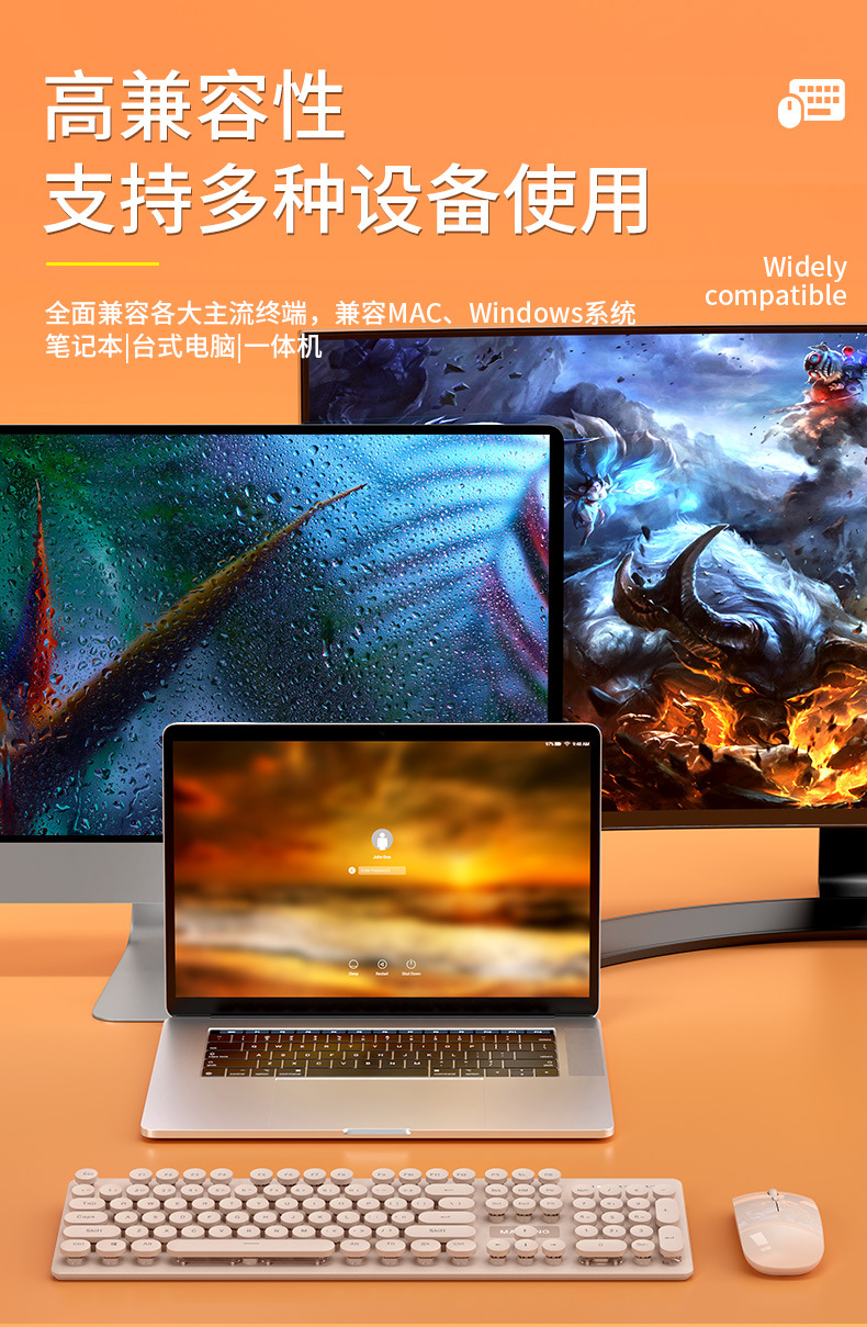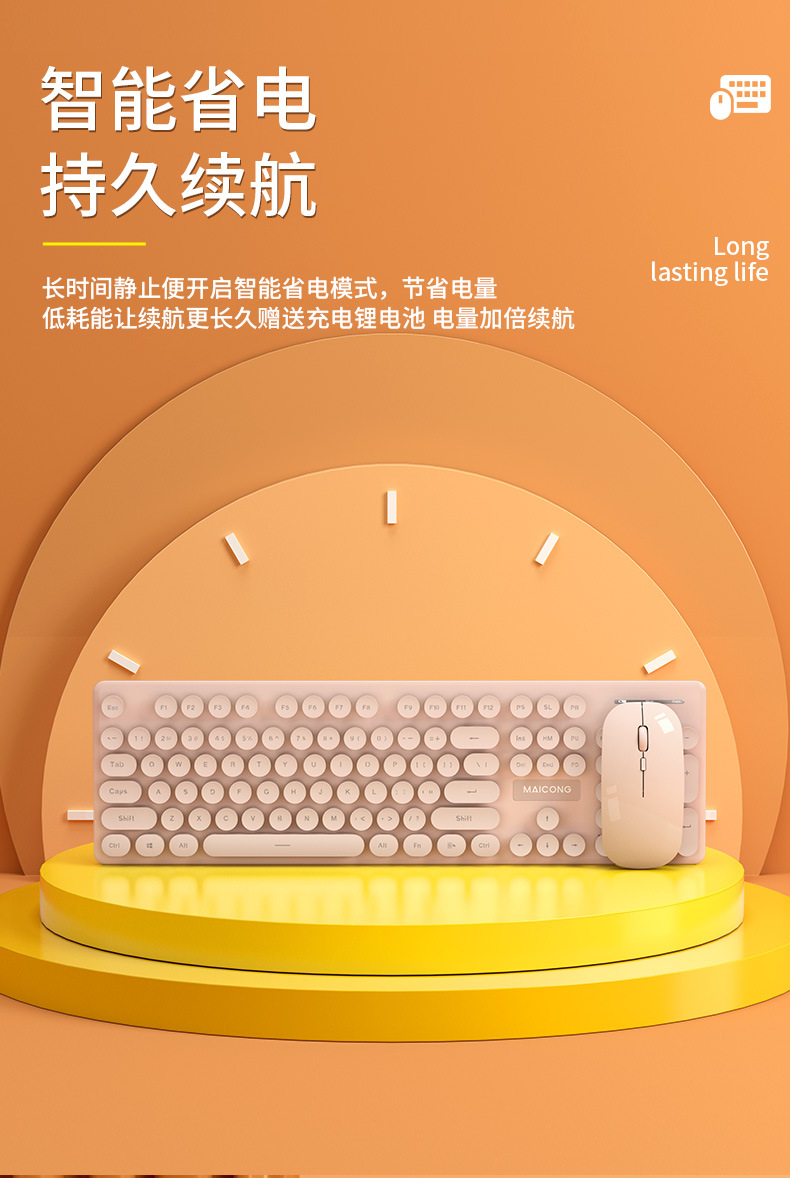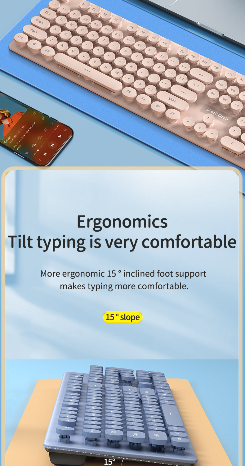 标题:迈从mc跨境新品无线2.4G蓝牙双模充电键盘鼠标套装莫兰迪键鼠套装