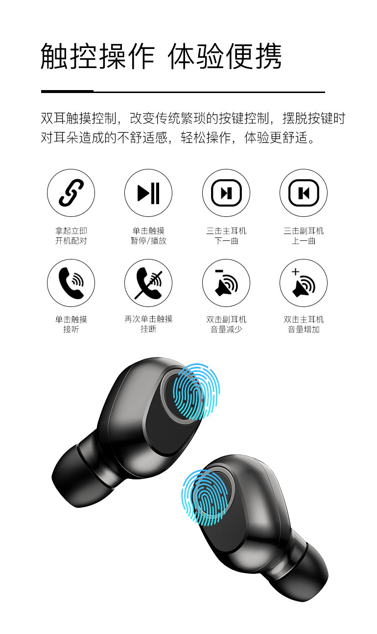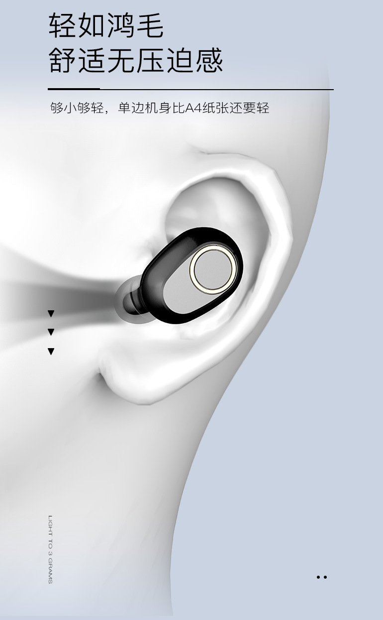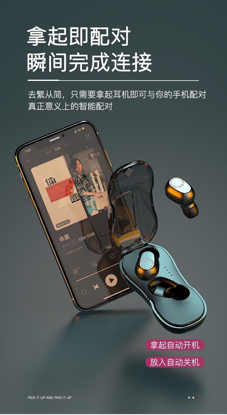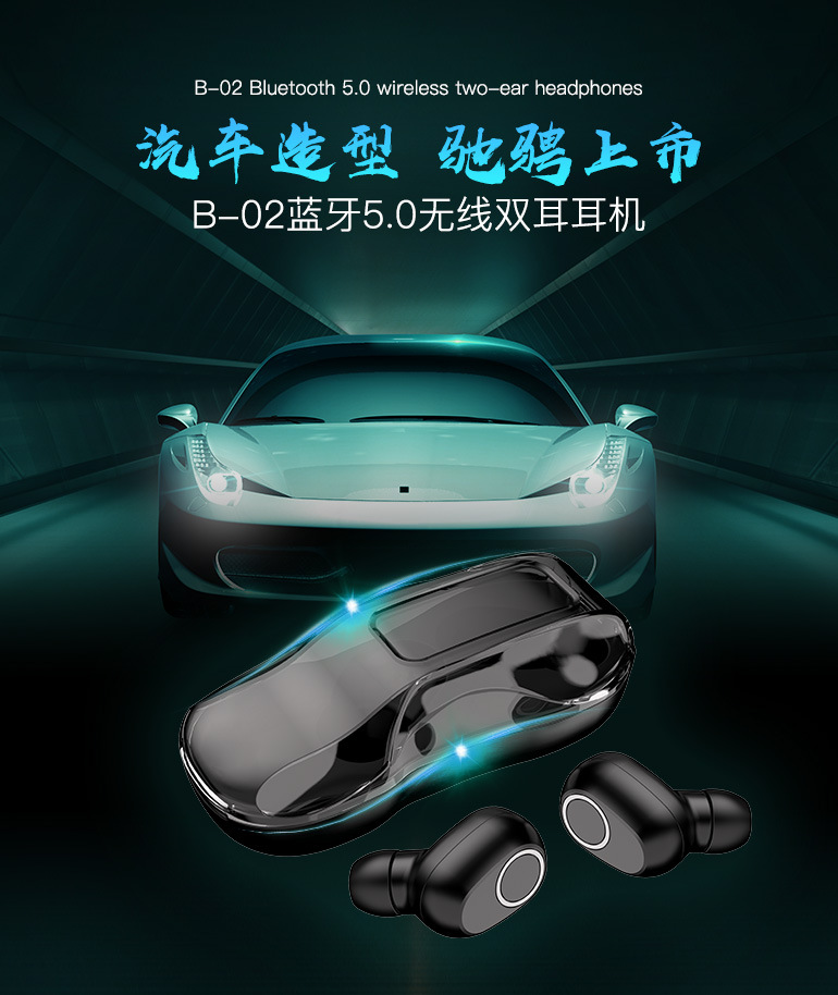 标题:B-02TWS Mini Car Warehouse Wireless 5.0 Bluetooth Headset Touch Invisible Dual Headset
