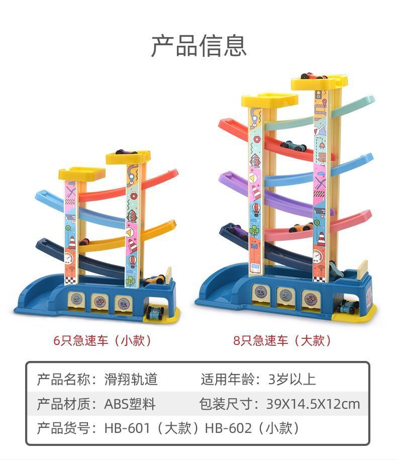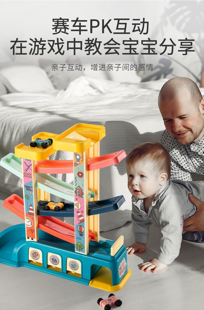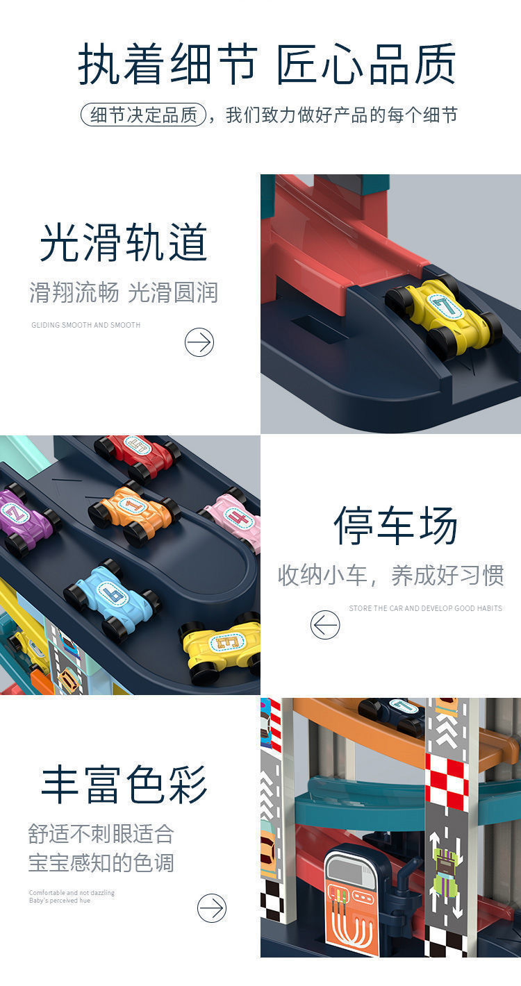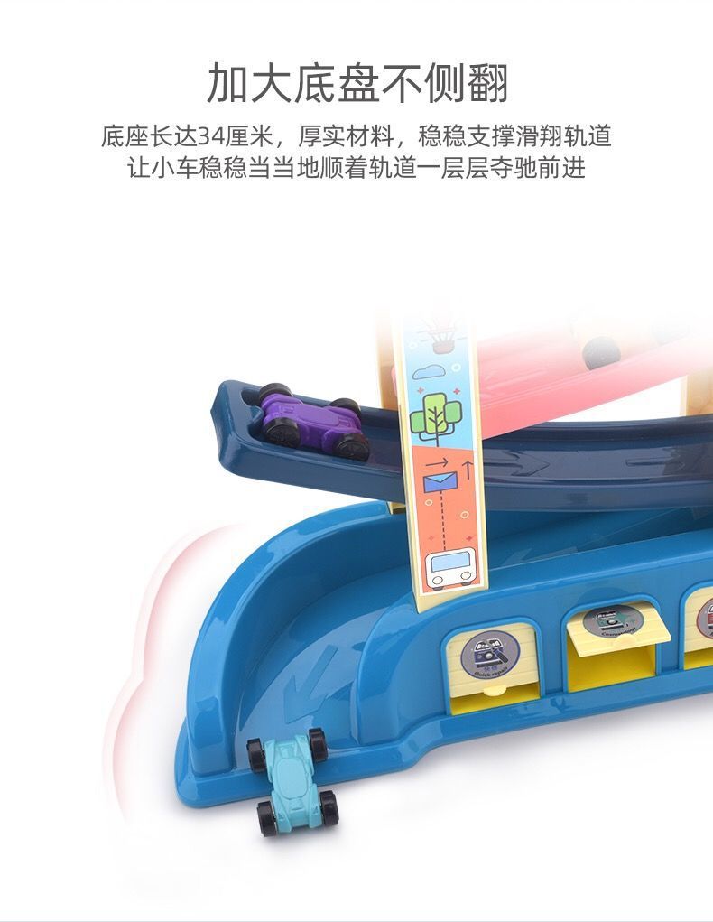 标题:Children's toy car boy and girl baby gliding track car parking lot pull-back car coasting toy