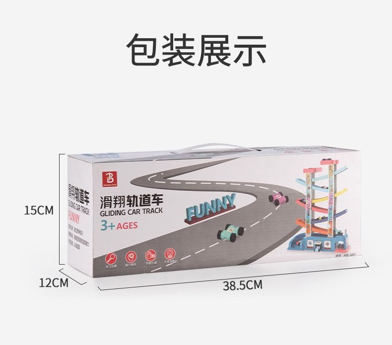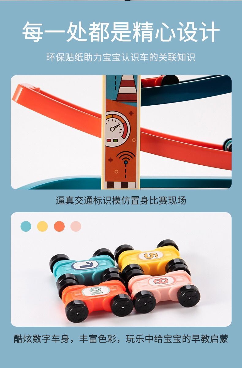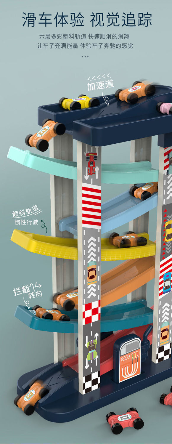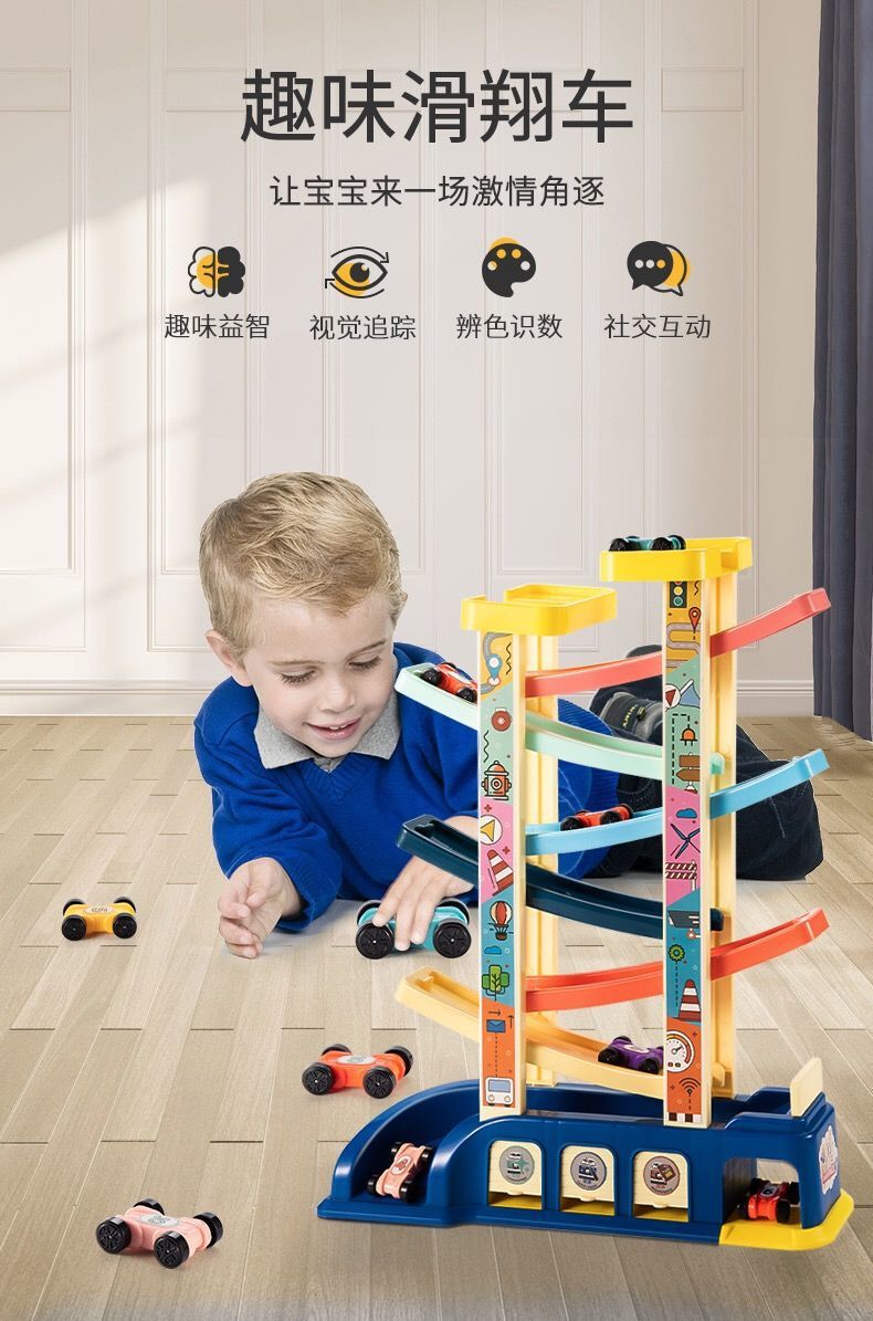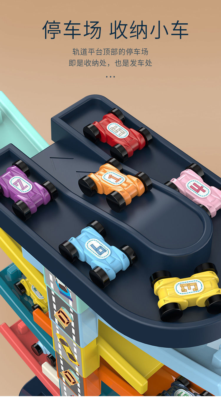 标题:Children's toy car boy and girl baby gliding track car parking lot pull-back car coasting toy