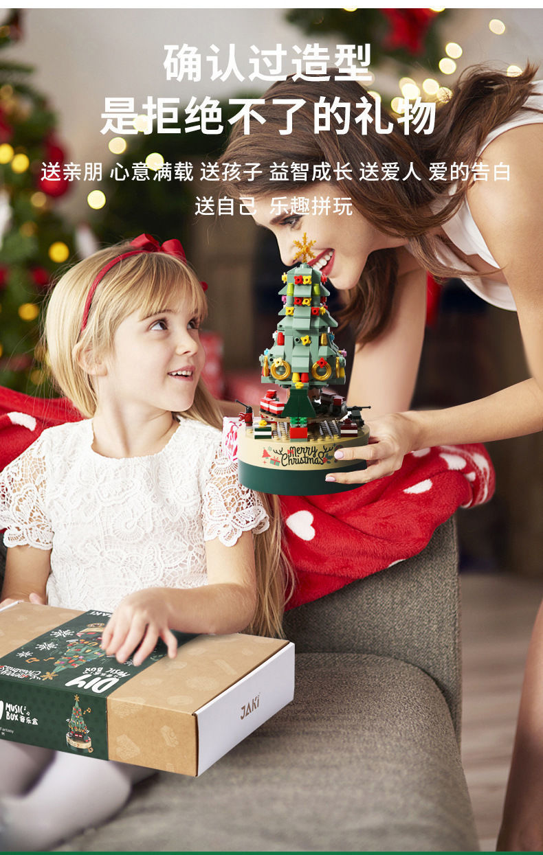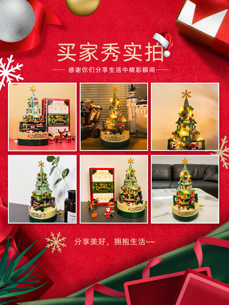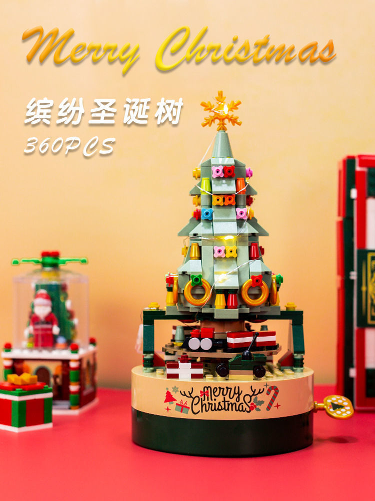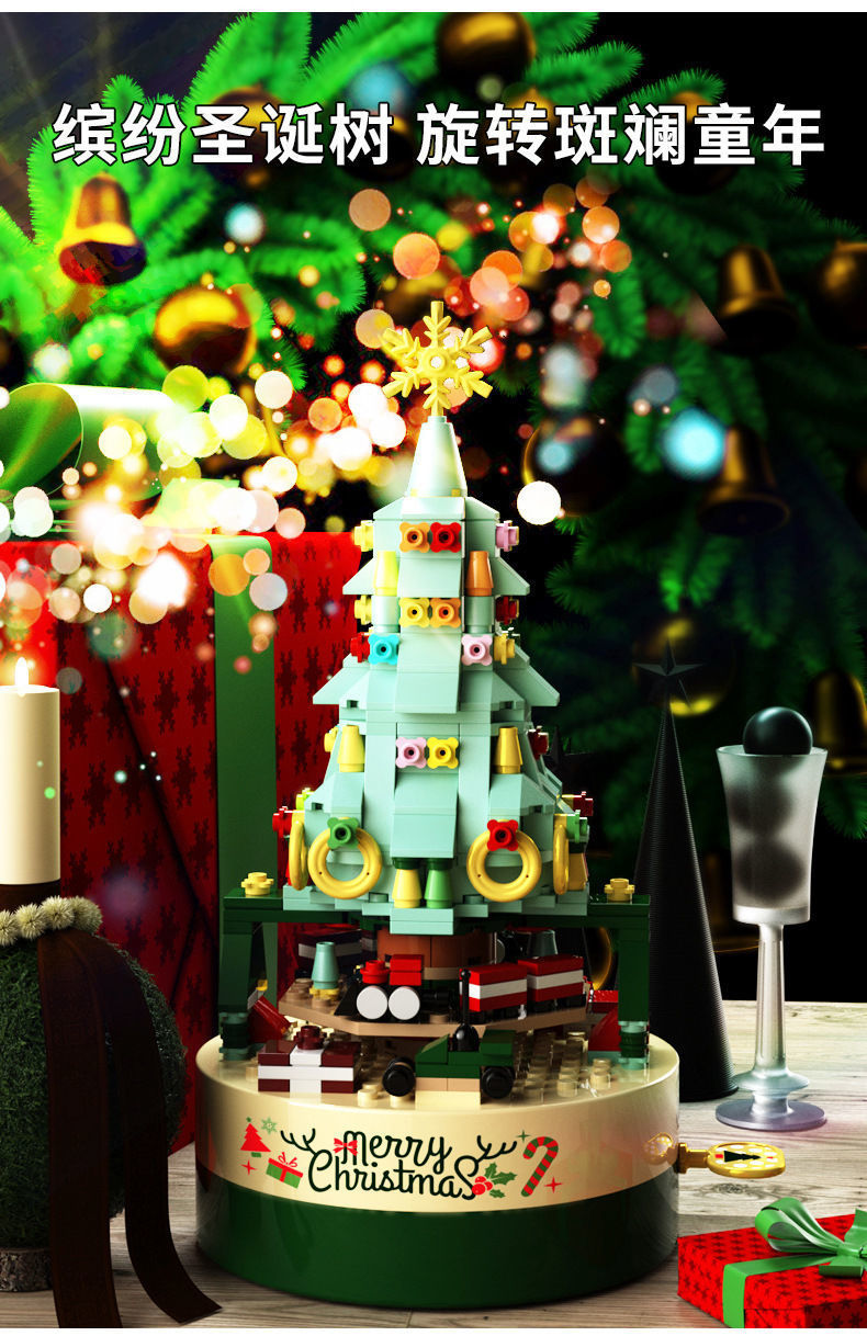 标题:Building blocks Christmas tree music box music box gift assembly boys and girls toy gifts holiday decorations compatible with Lego