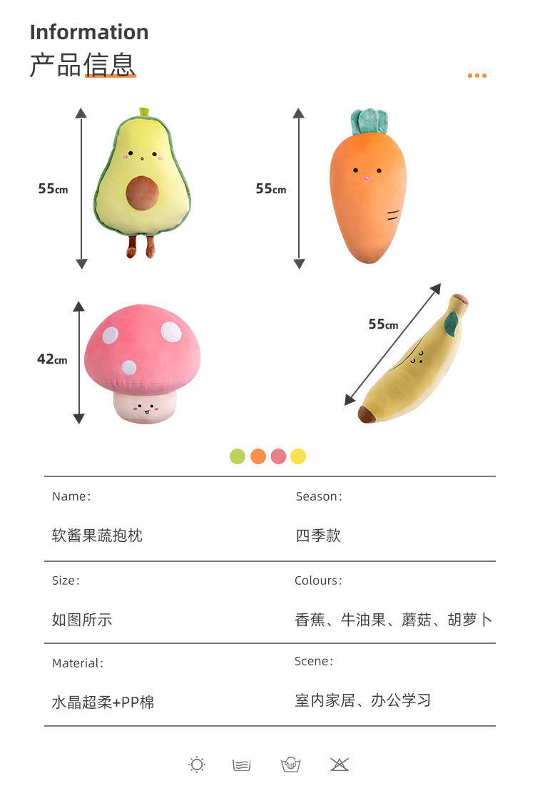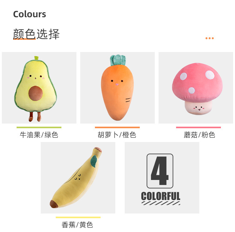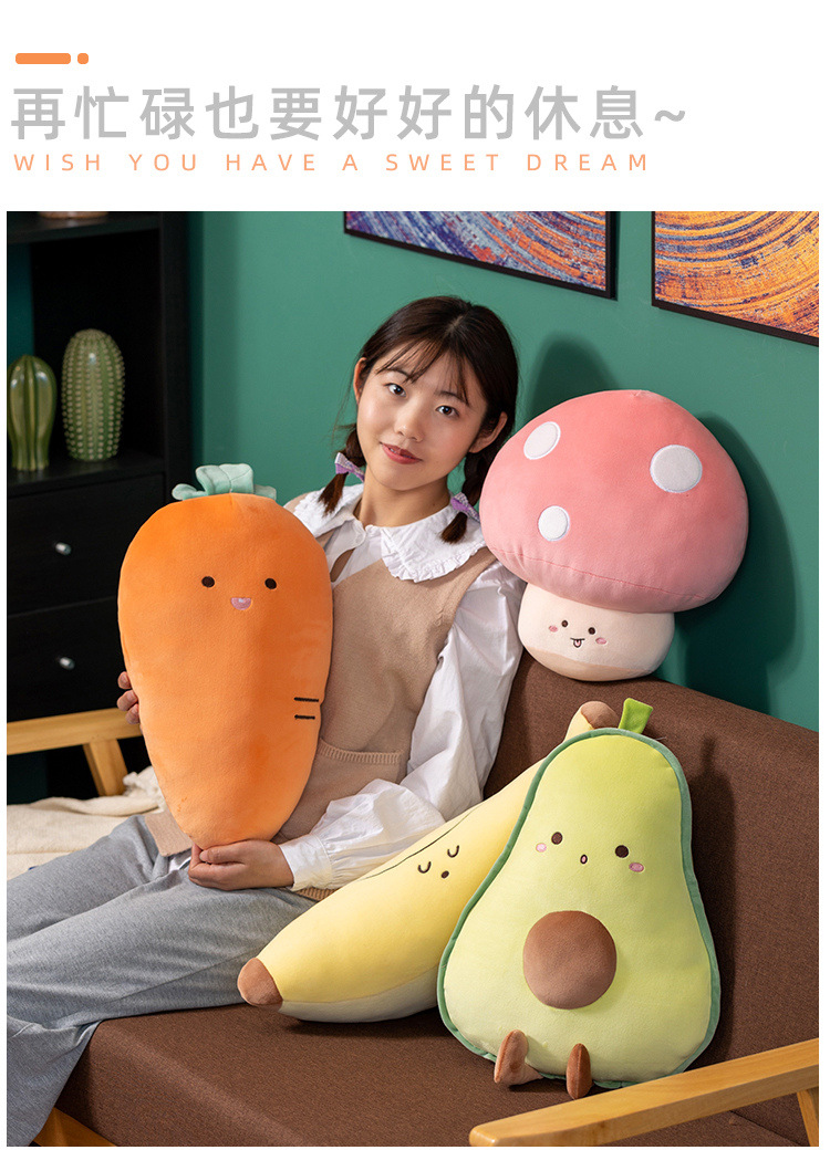 标题:Cute avocado pillow carrot fruit plush toy doll banana fruit and vegetable cushion girl gift doll
