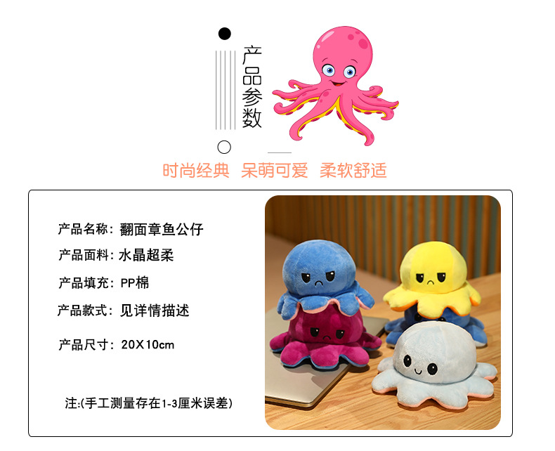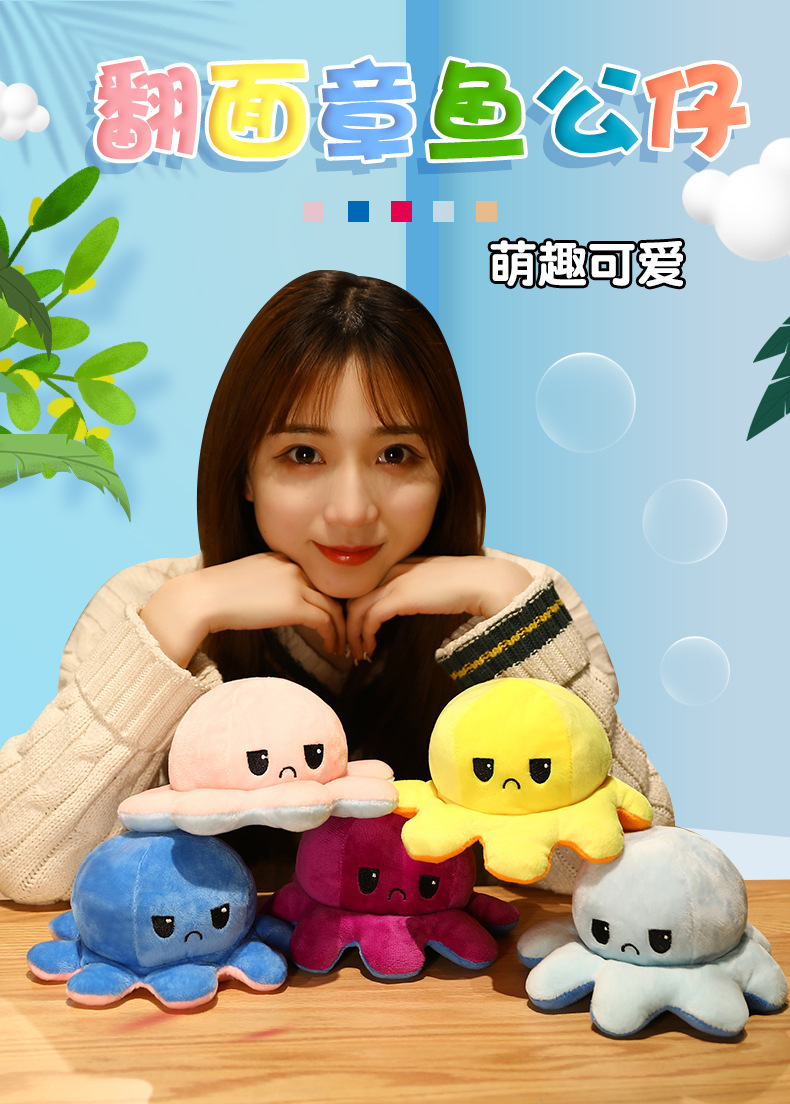 标题:Cute flipping octopus angry octopus doll flipping octopus plush toy face-changing cross-border octopus