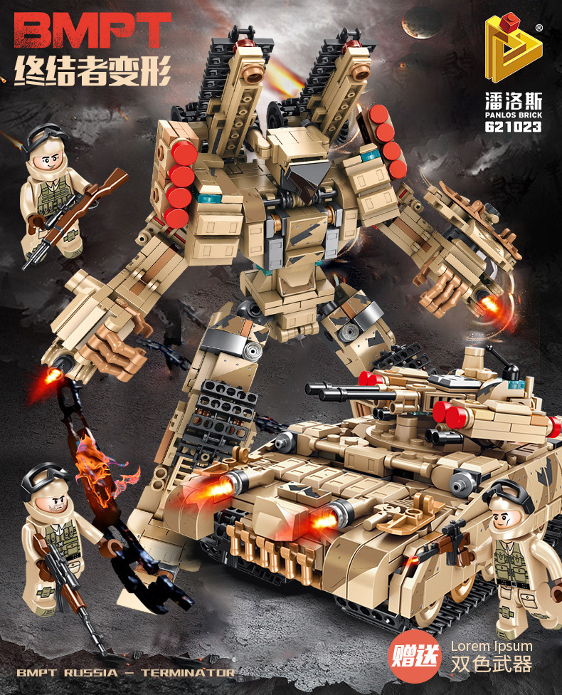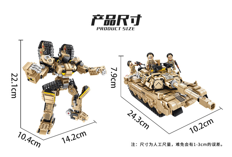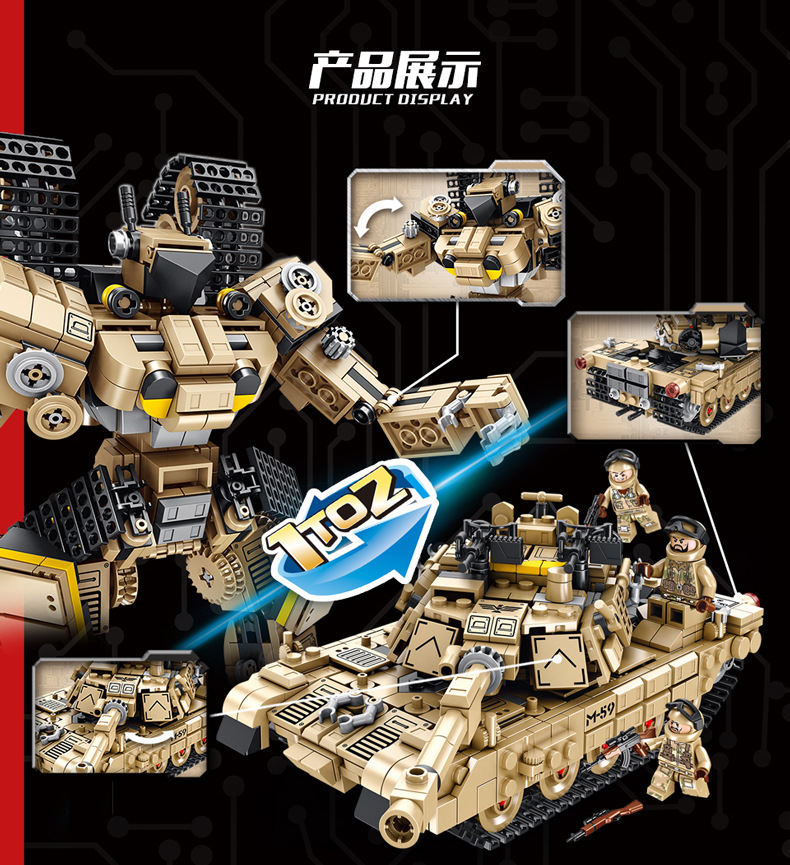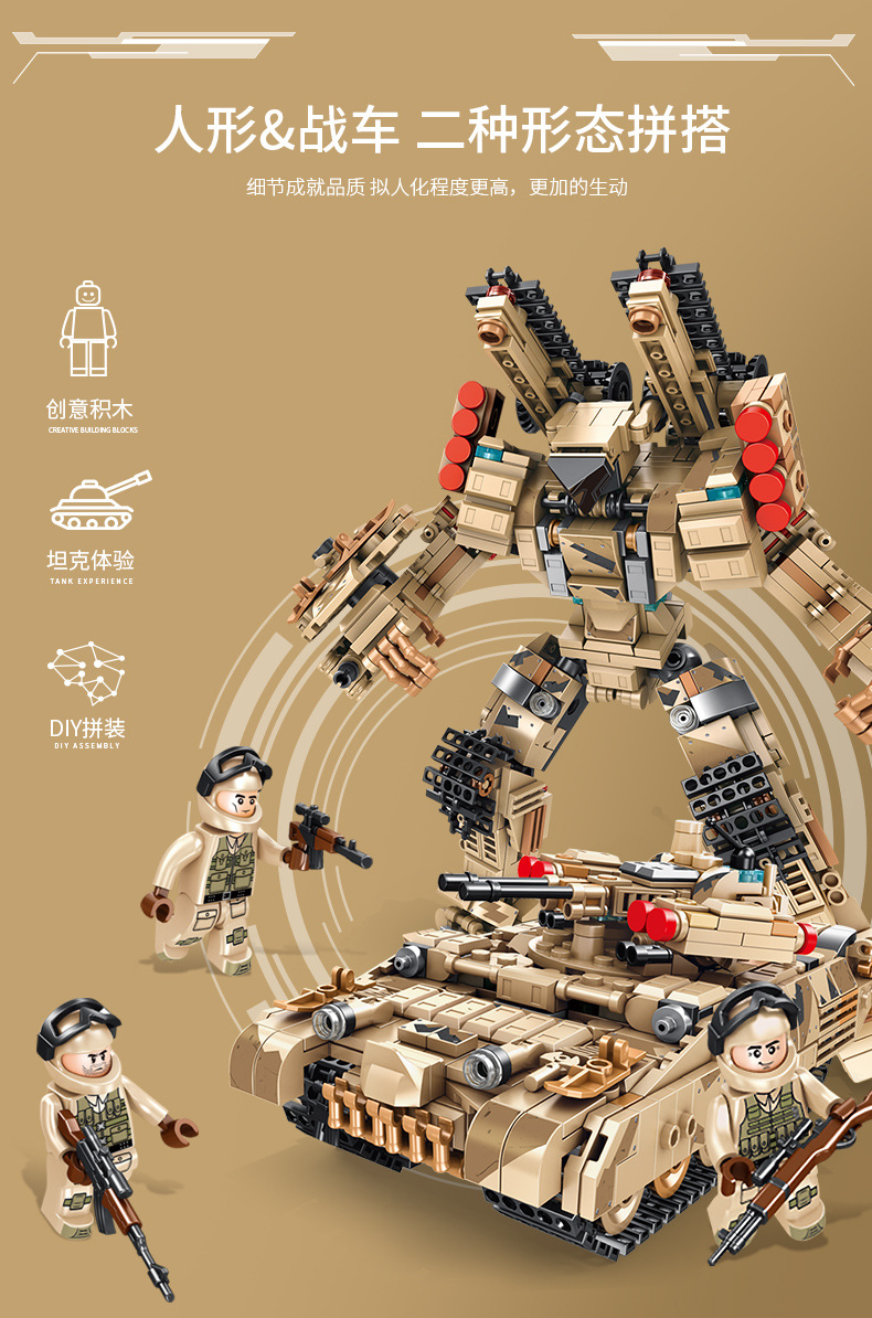 标题:Building blocks deformation assembled tank mecha compatible with Lego small particles boy educational military building block toys