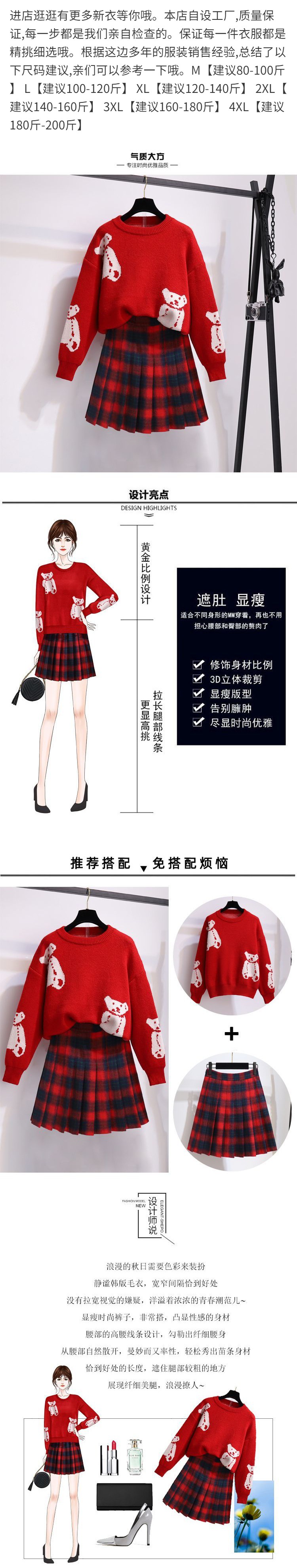 标题:大码女装200斤胖妹妹冬季套装女显瘦针织毛衣半身裙拜年服两件套【