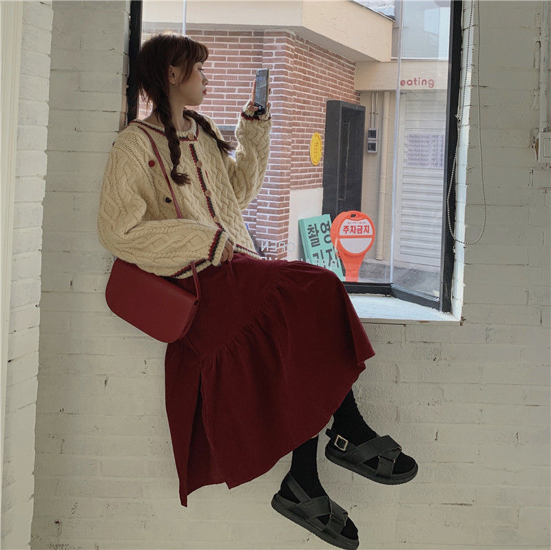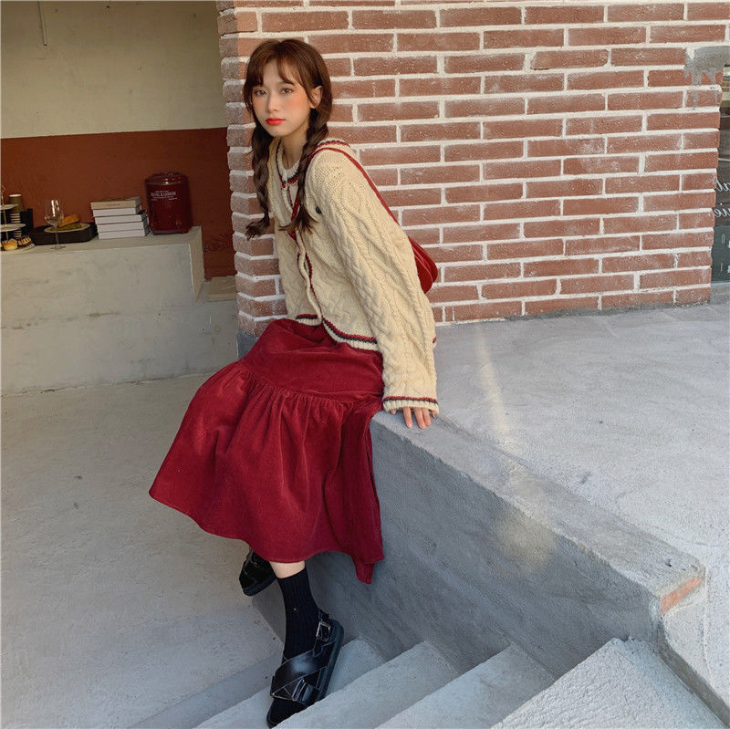 属性:毛衣+半身裙 收藏优先发货,单件杏色毛衣 收藏优先发货,单件酒红色半身裙