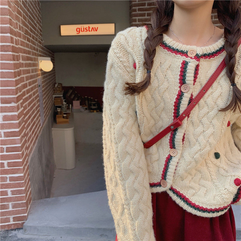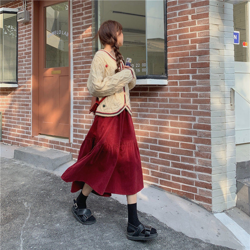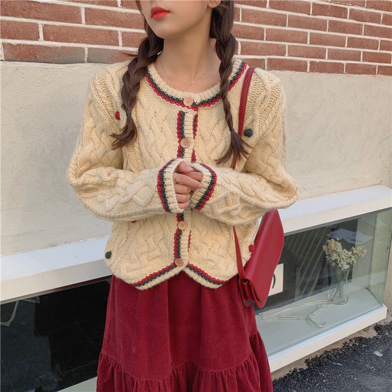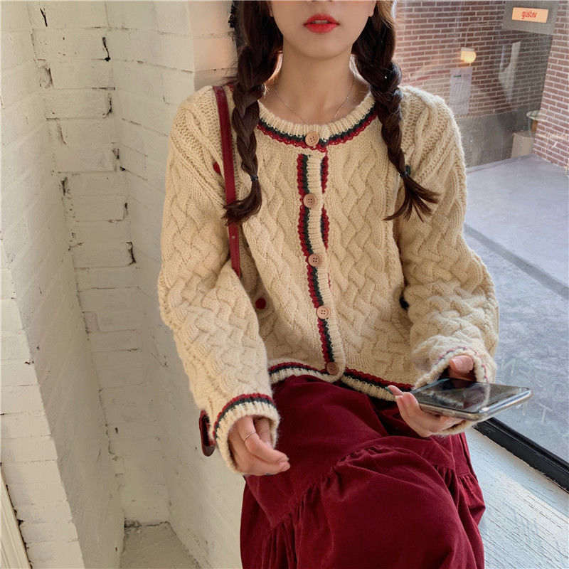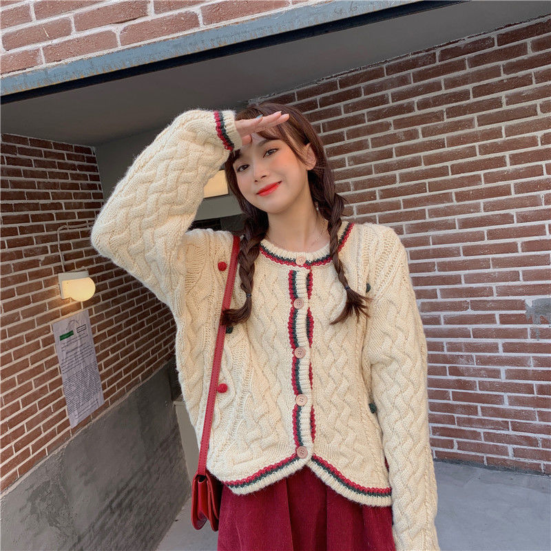 标题:【两件套】复古宽松减龄麻花开衫毛衣+高腰半身裙早秋时尚套装女