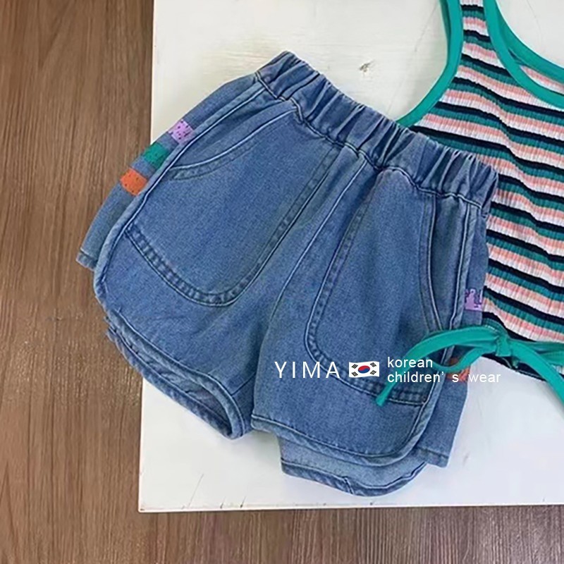 标题:韩版童装女童夏装条纹吊带背心上衣牛仔短裤儿童网红洋气时髦套装