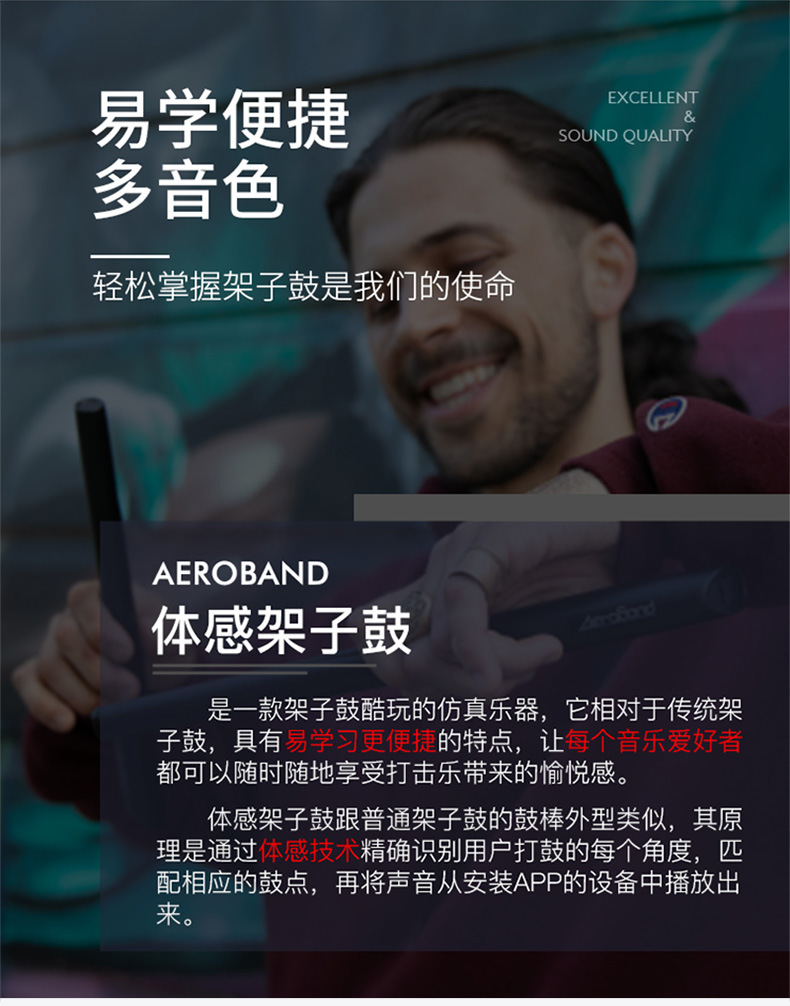 标题:AeroBand体感架子鼓练手成人儿童家用初学者鼓棒电子鼓空气架子鼓