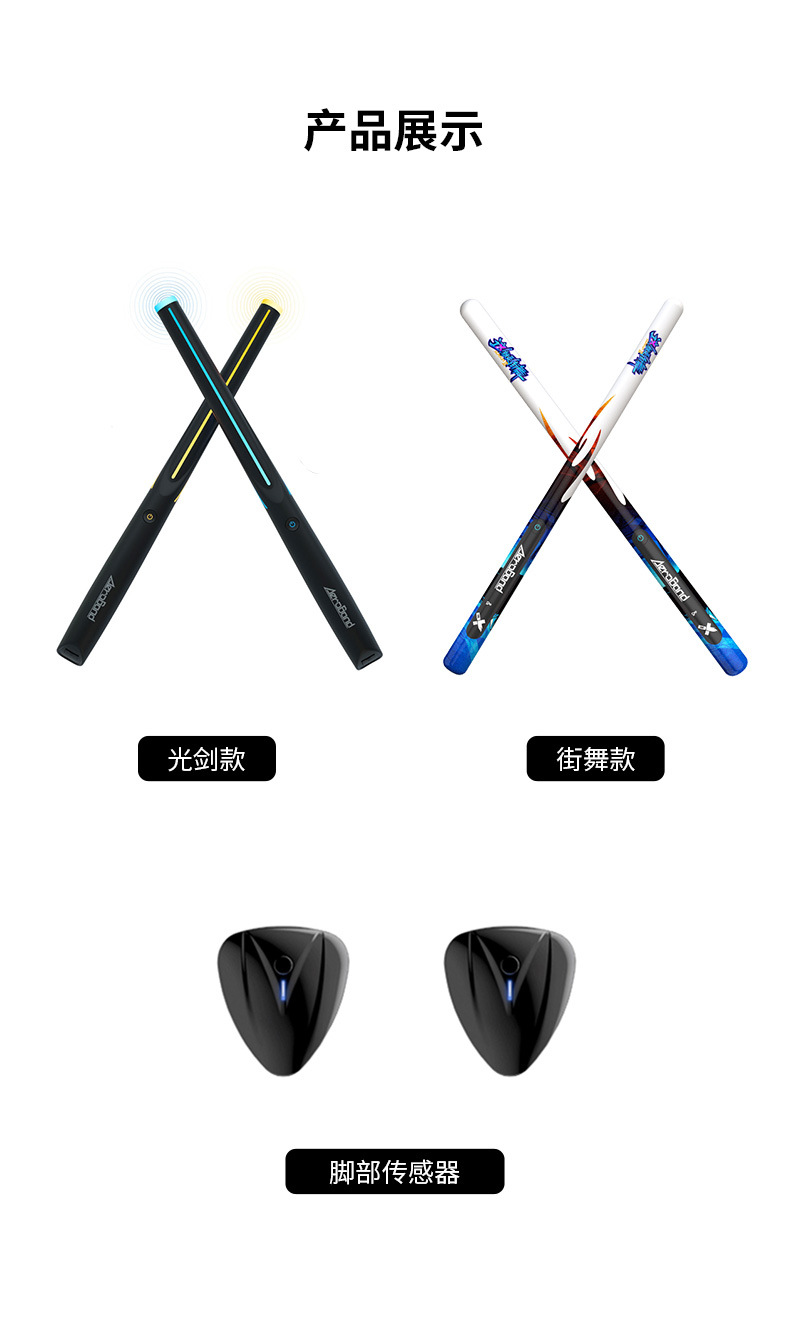 描述:产品类别:电子鼓,货号:体感架子鼓,品牌:aeroband,材质:PVC,产地:中国,颜色:光剑款,光剑款-套装,街舞款,街舞款-套装,皓白款,皓白款-套装,原木款,原木款-套装,儿童专用:否,