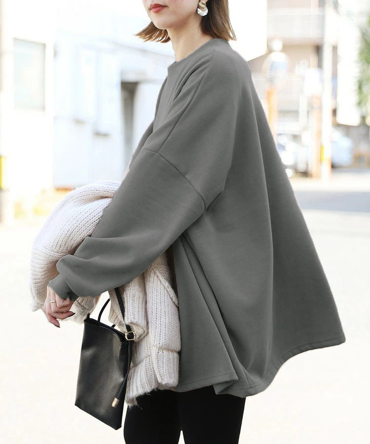 标题:日本乐天新品 2021冬季女式加绒卫衣宽松中长款大廓形加厚外衣女