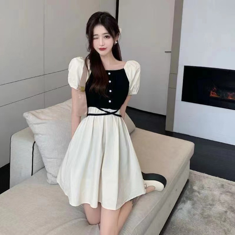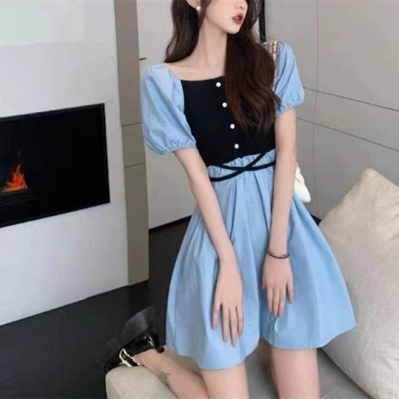 描述:面料名称:聚酯纤维,主图来源:实拍有模特,货源类别:现货,风格:公主,图案:印花,工艺:拼贴/拼接,产地:广州,库存类型:整单,款式:基本款,组合形式:单件,裙长:短裙,裙型:公主裙,领型:方领,袖型:常规袖,袖长:短袖,腰型:高腰,衣门襟:套头,流行元素:拼接,上市年份/季节:2022年夏季,主面料成分:聚酯纤维(涤纶),主面料成分的含量:71%-80%,主面料成分2:聚酯纤维(涤纶),主面料成分2的含量:10%-29%,里料成分:聚酯纤维(涤纶),里料成分含量:10%-29%,是否库存:是,货号:梦梦5508,品牌:爱依言品,主面料产地是否进口:否,是否外贸:是,颜色:杏色,蓝色,尺码:S,M,L,XL,2XL,主要下游平台:ebay,亚马逊,wish,速卖通,独立站,LAZADA,主要销售地区:非洲,欧洲,南美,东南亚,北美,东北亚,中东,有可授权的自有品牌:是,适合年龄:18-24周岁,是否跨境出口专供货源:是,风格类型:清新甜美,廓形:A,适用季节:春夏季,服装款式细节:纽扣,