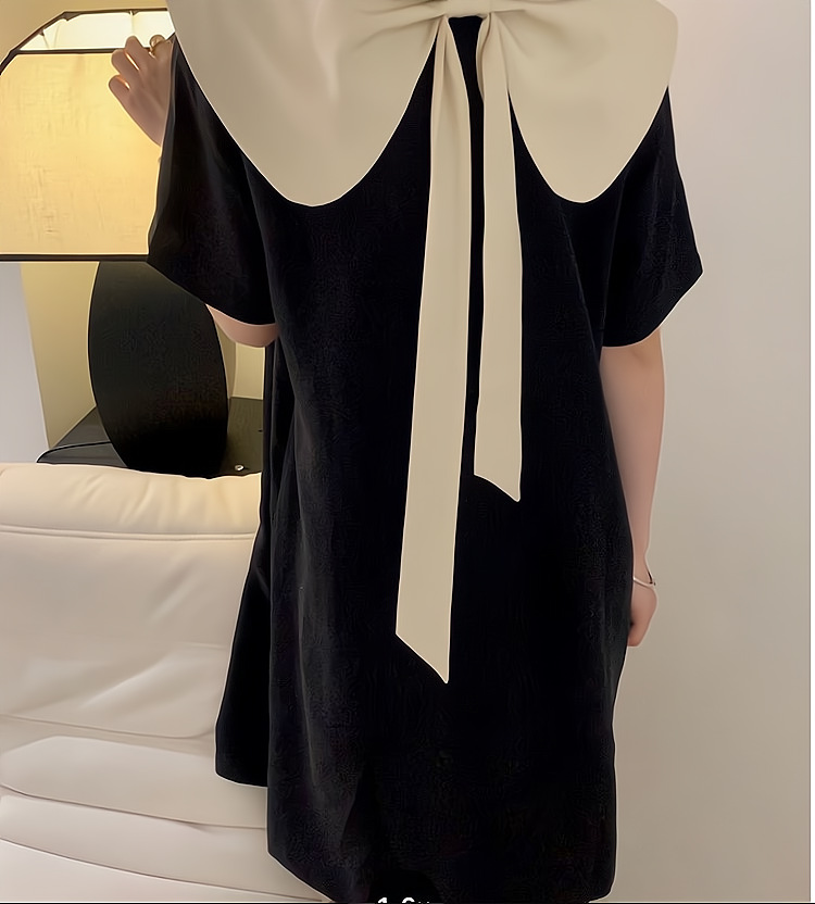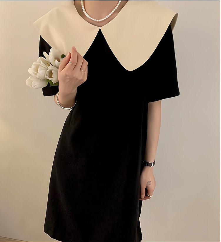 标题:赫本风小黑裙女2022夏季新款女装法式小众设计感娃娃领宽松连衣裙