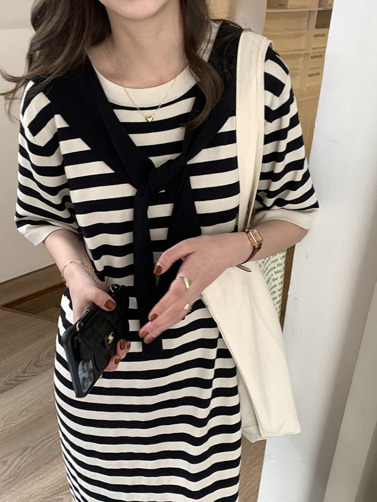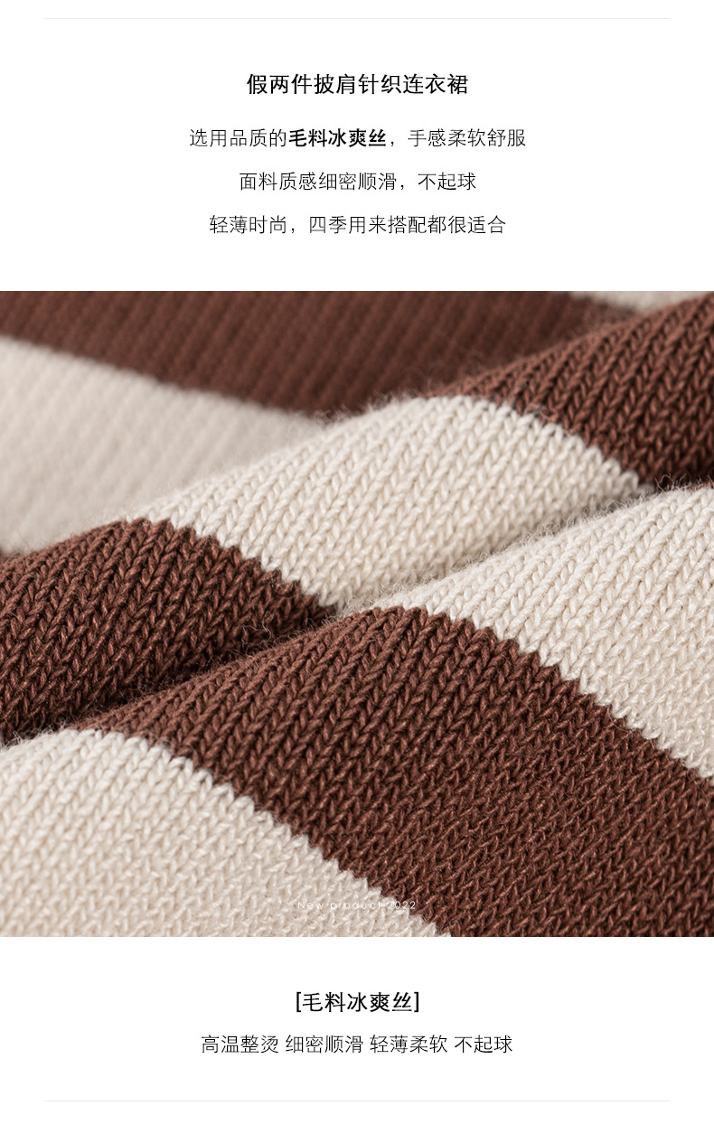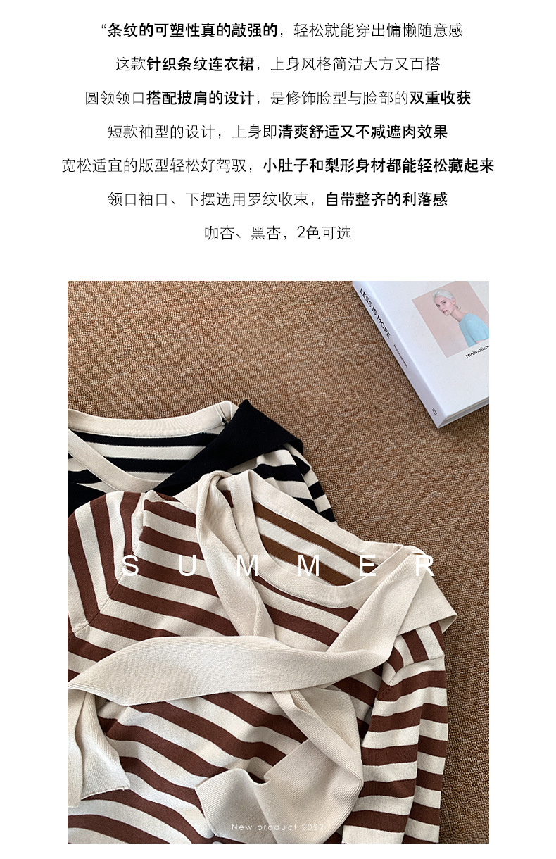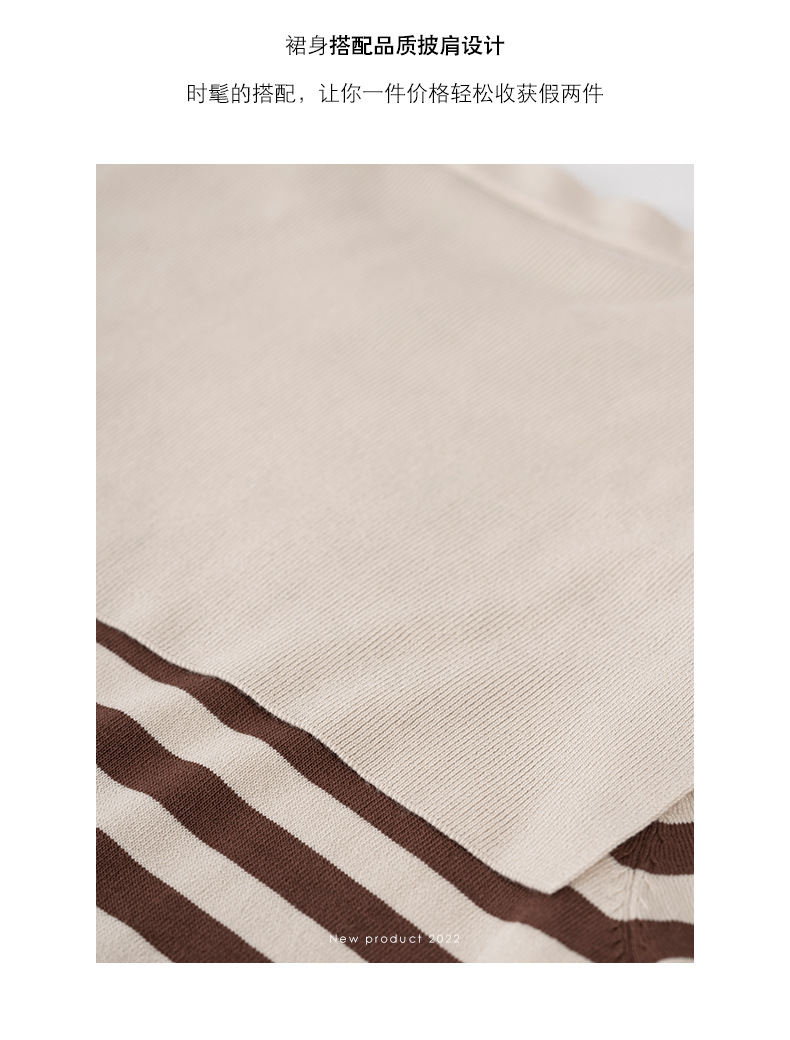 标题:黄峥假两件披肩针织连衣裙女2022夏韩版宽松休闲条纹裙子122MZ158