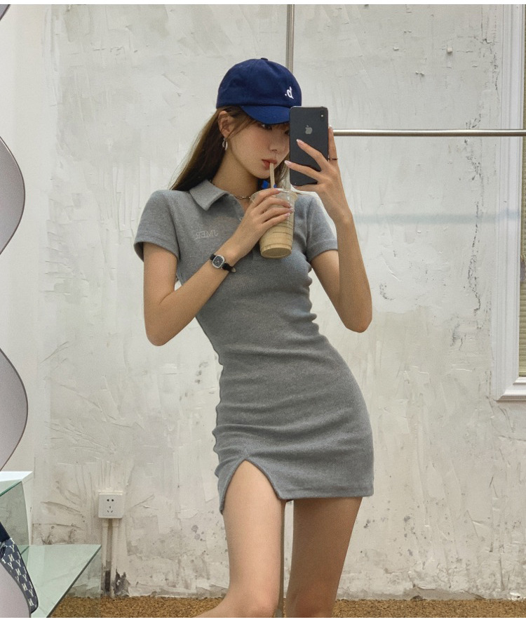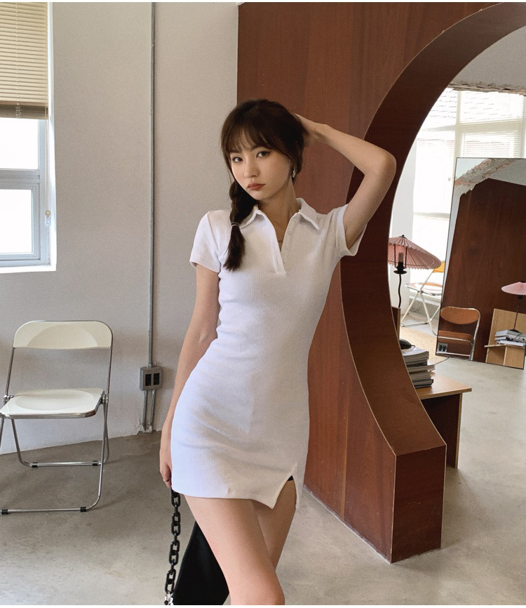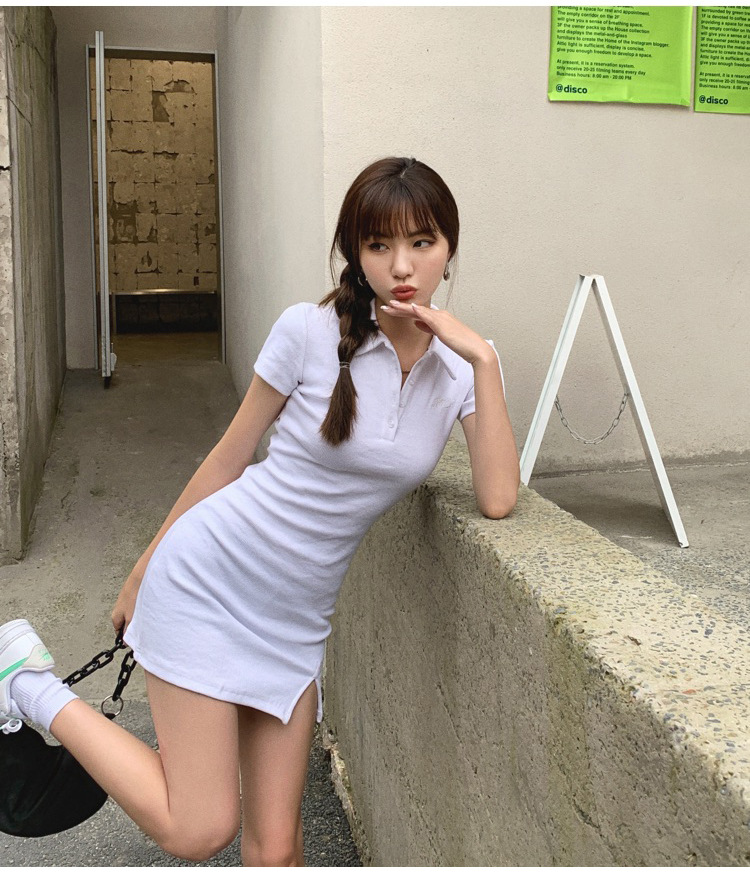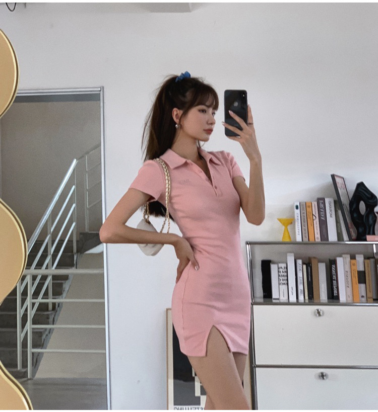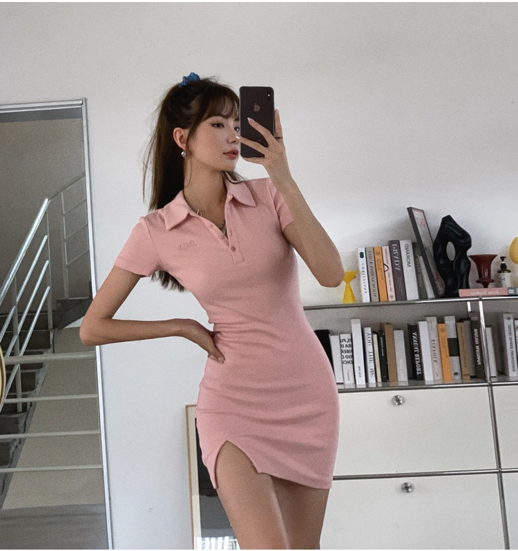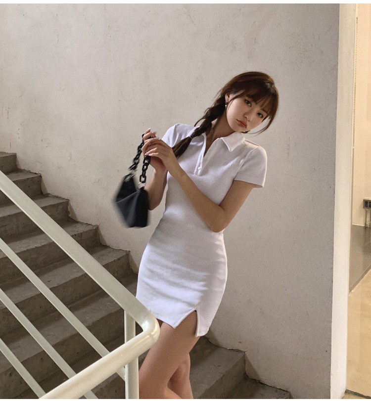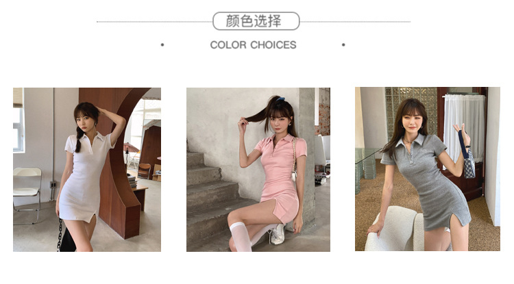 标题:性感开叉连衣裙女夏季新款欧美纯欲高腰修身短款polo领包臀裙辣妹