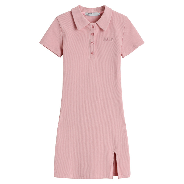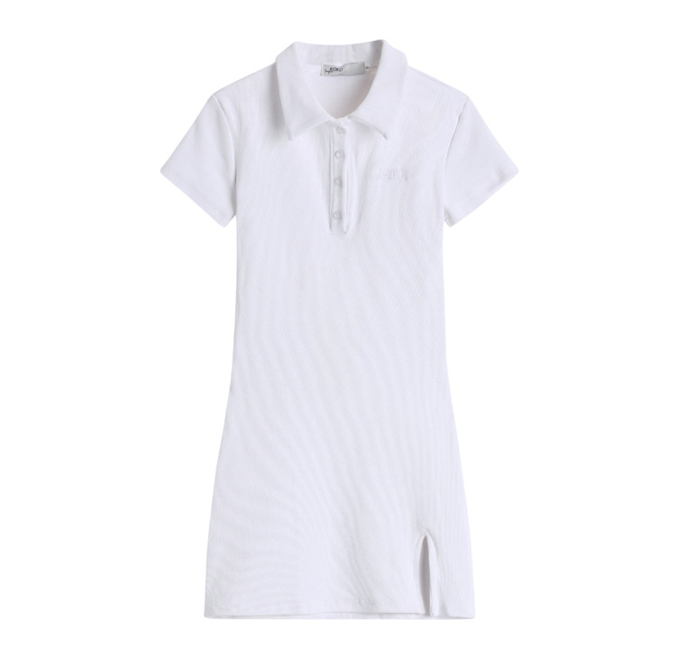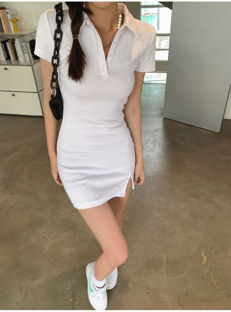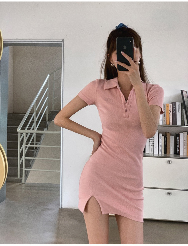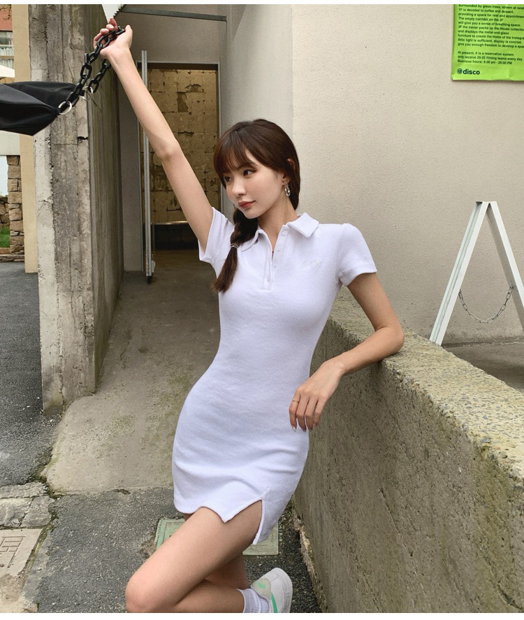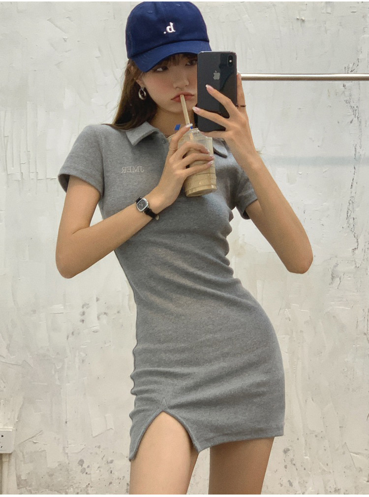 标题:性感开叉连衣裙女夏季新款欧美纯欲高腰修身短款polo领包臀裙辣妹