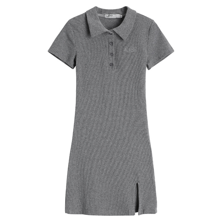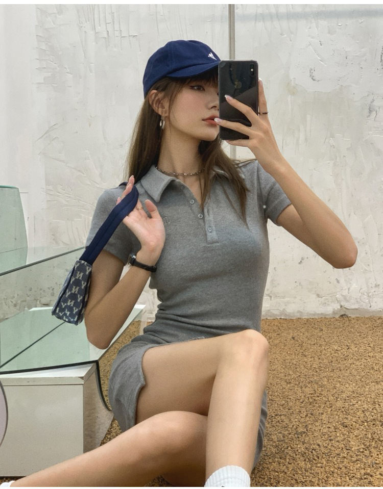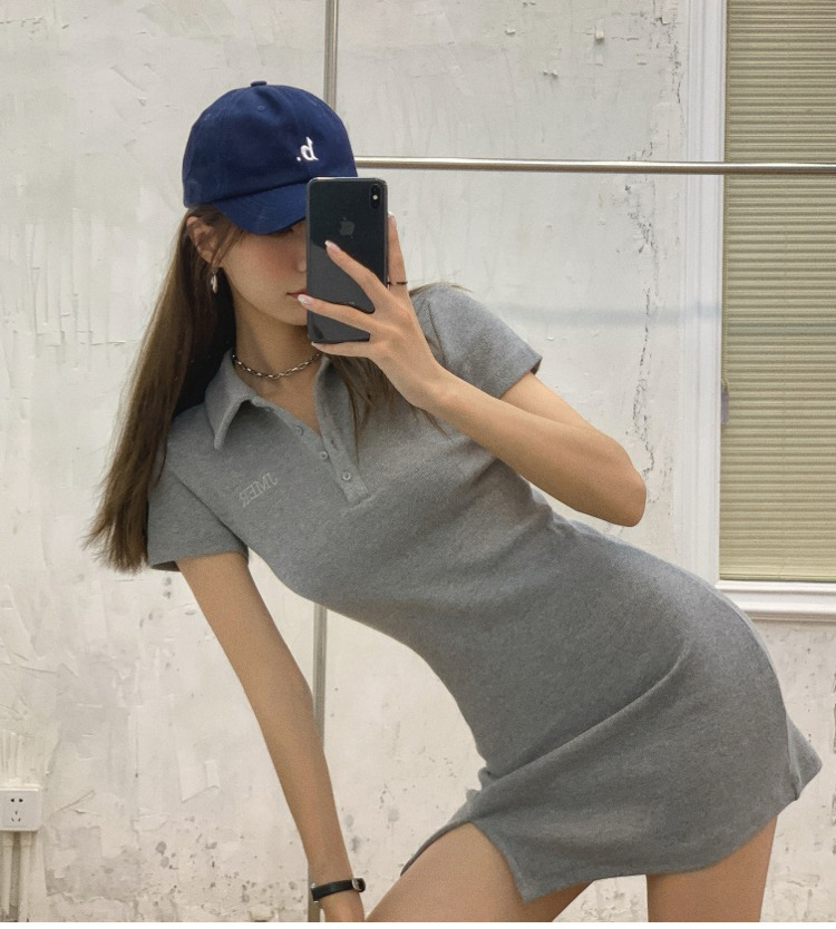 描述:面料名称:棉,图案:纯色,工艺:高温定型,产地:广州,款式:套头,组合形式:单件,裙长:短裙,裙型:高腰裙,领型:POLO领,袖型:常规袖,袖长:短袖,腰型:高腰,流行元素:其他,上市年份/季节:2022年夏季,主面料成分:棉,主面料成分2:氨纶,货号:6675,品牌:其他,颜色:6675灰色,尺码:S,M,L,风格类型:私服名媛,门襟:套头,主面料成分含量:50%(不含)-70%(含),风格:纯欲风,是否跨境货源:否,主面料成分2含量:30%及以下,