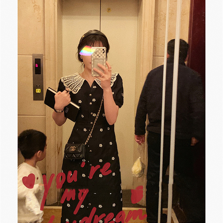 描述:面料名称:聚酯纤维,图案:碎花,工艺:拼贴/拼接,产地:广州,款式:基本款,组合形式:单件,裙长:中长裙,裙型:A字裙,领型:娃娃领,袖型:常规袖,袖长:短袖,腰型:高腰,流行元素:拼接,上市年份/季节:2022年夏季,主面料成分:聚酯纤维(涤纶),主面料成分2:聚酯纤维(涤纶),货号:202205131655,颜色:黑白花连衣裙,尺码:XS,S,M,L,XL,风格类型:气质通勤,门襟:套头,主面料成分含量:50%(不含)-70%(含),风格:通勤风,是否跨境货源:否,主面料成分2含量:30%(不含)-50%(含),