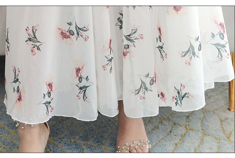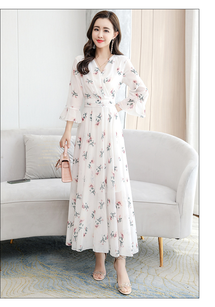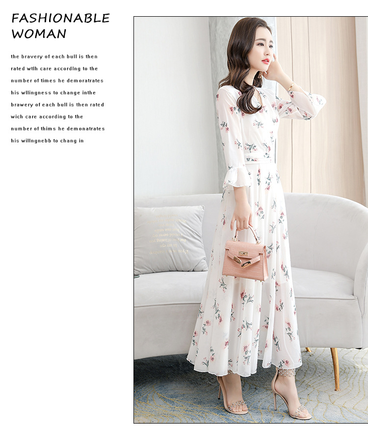 标题:2022新型シフォンワンピースロング夏新型フレアスリーブフレンチエレガンス花柄スカート