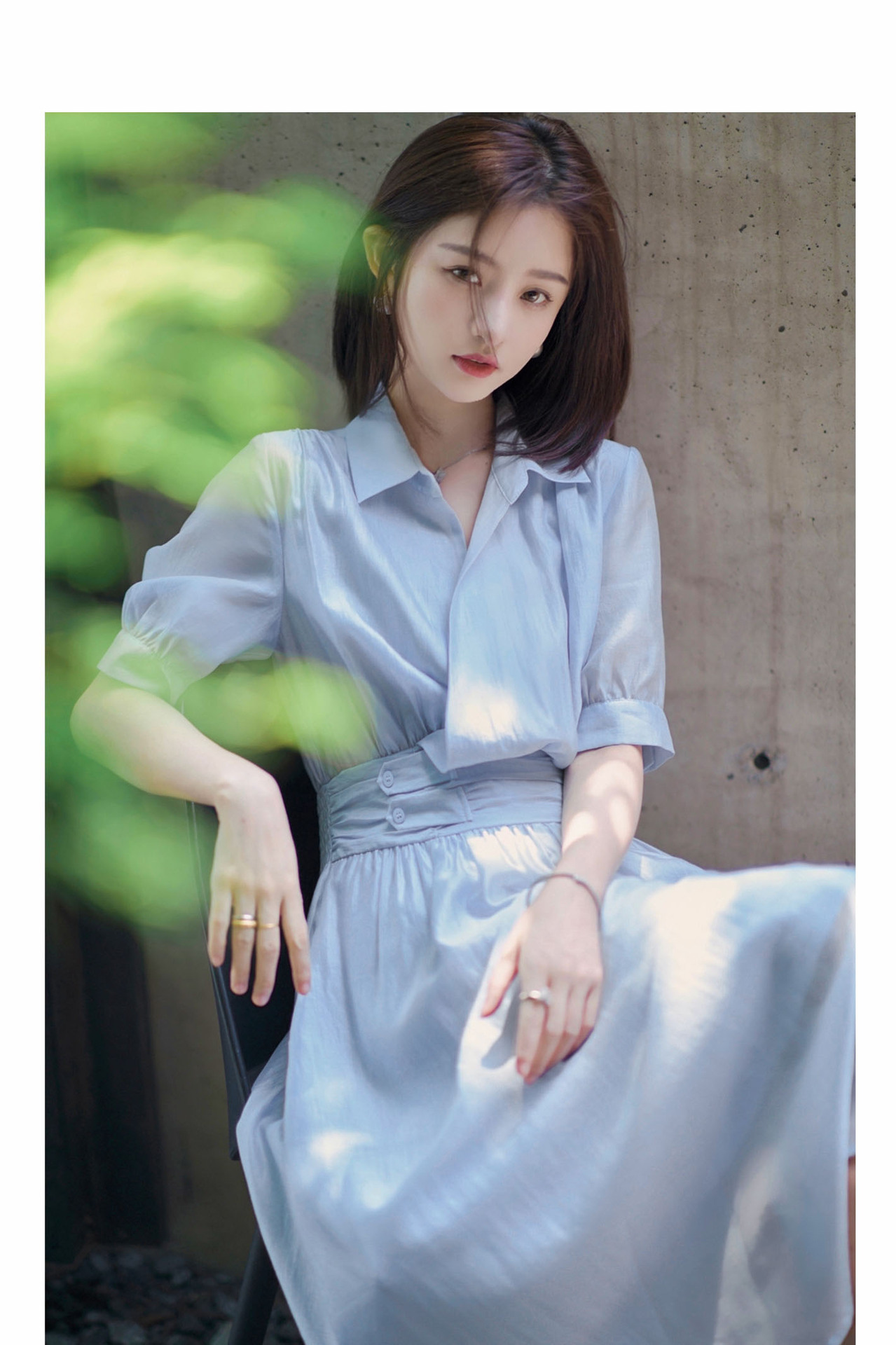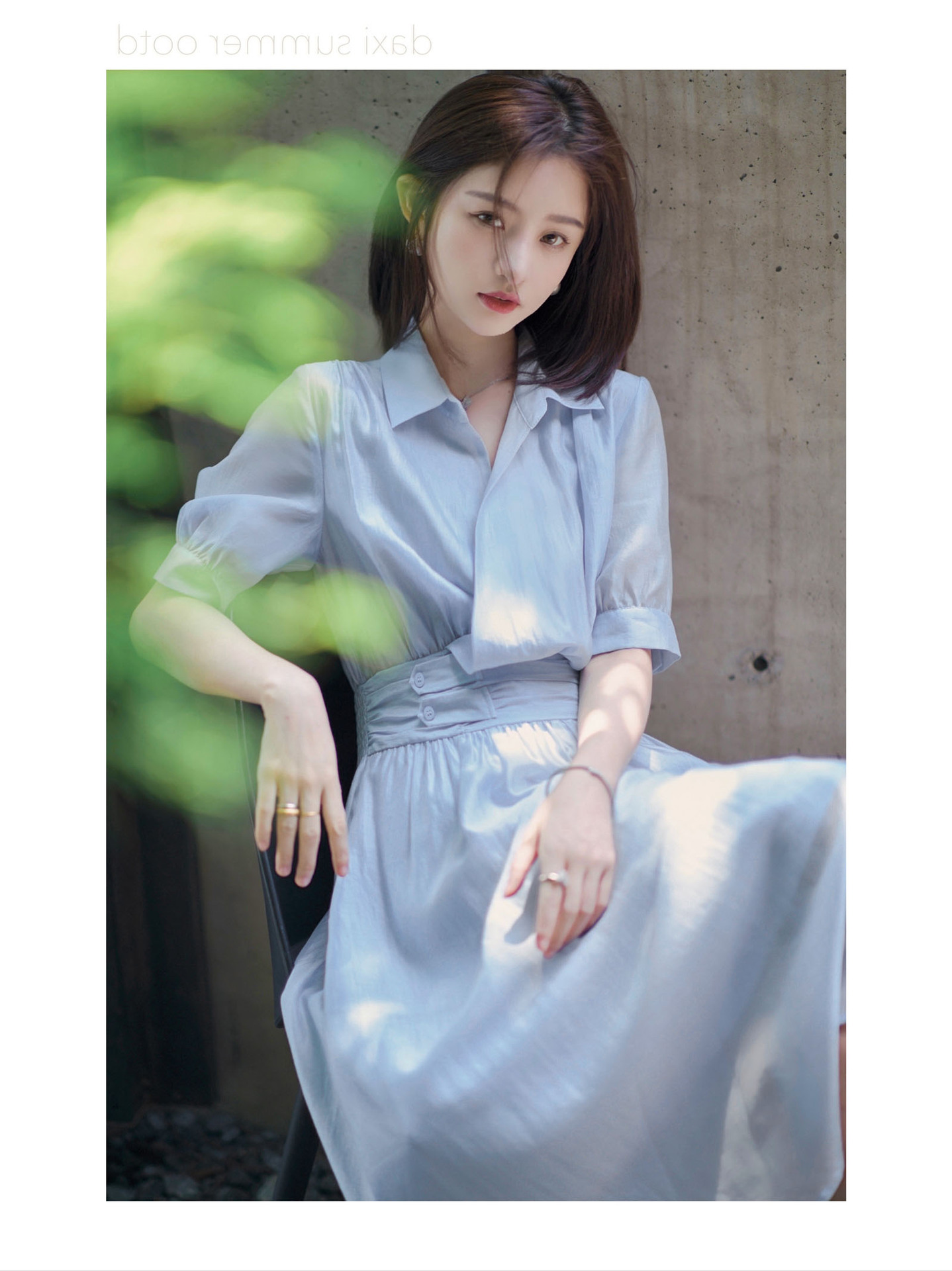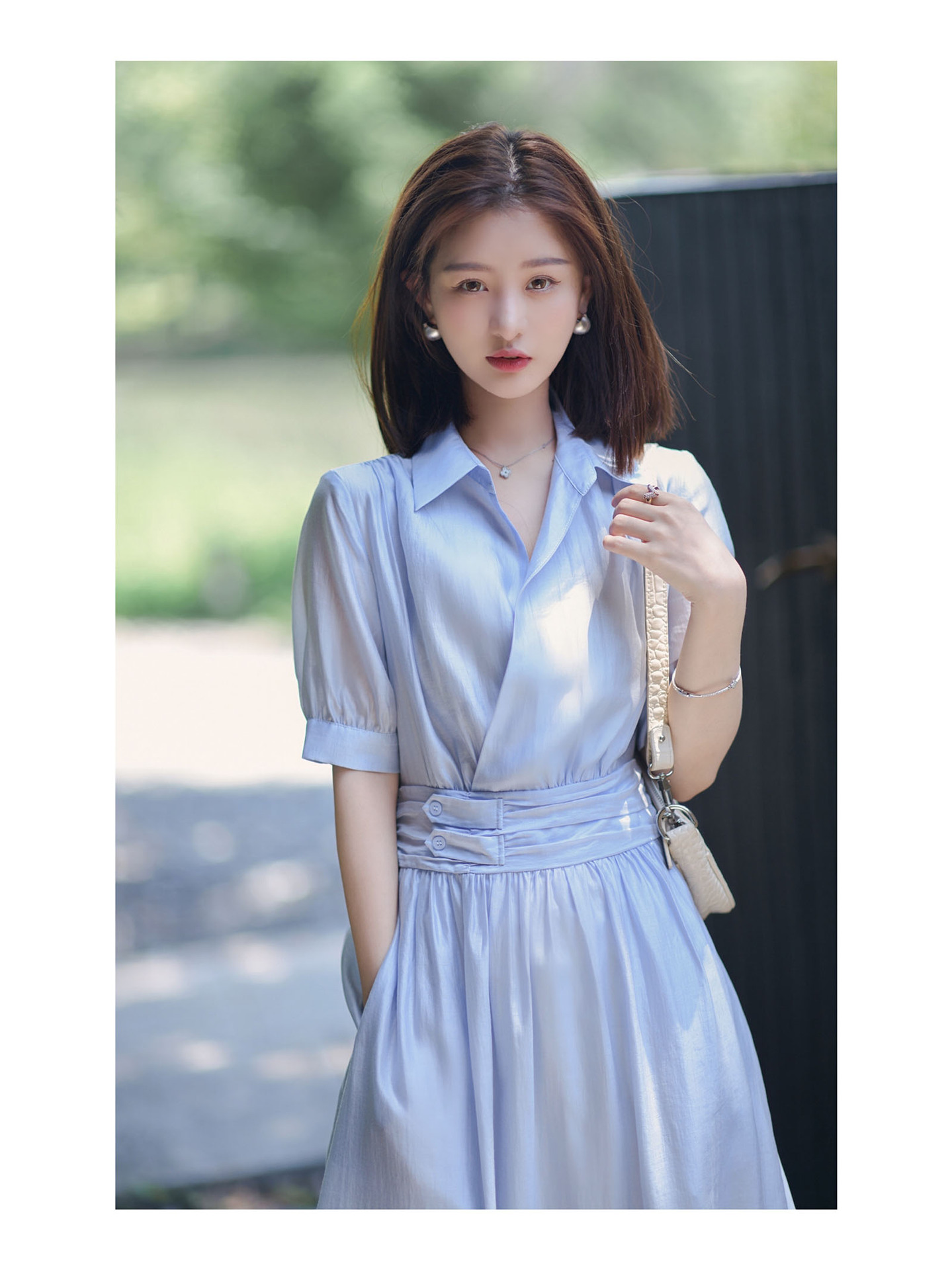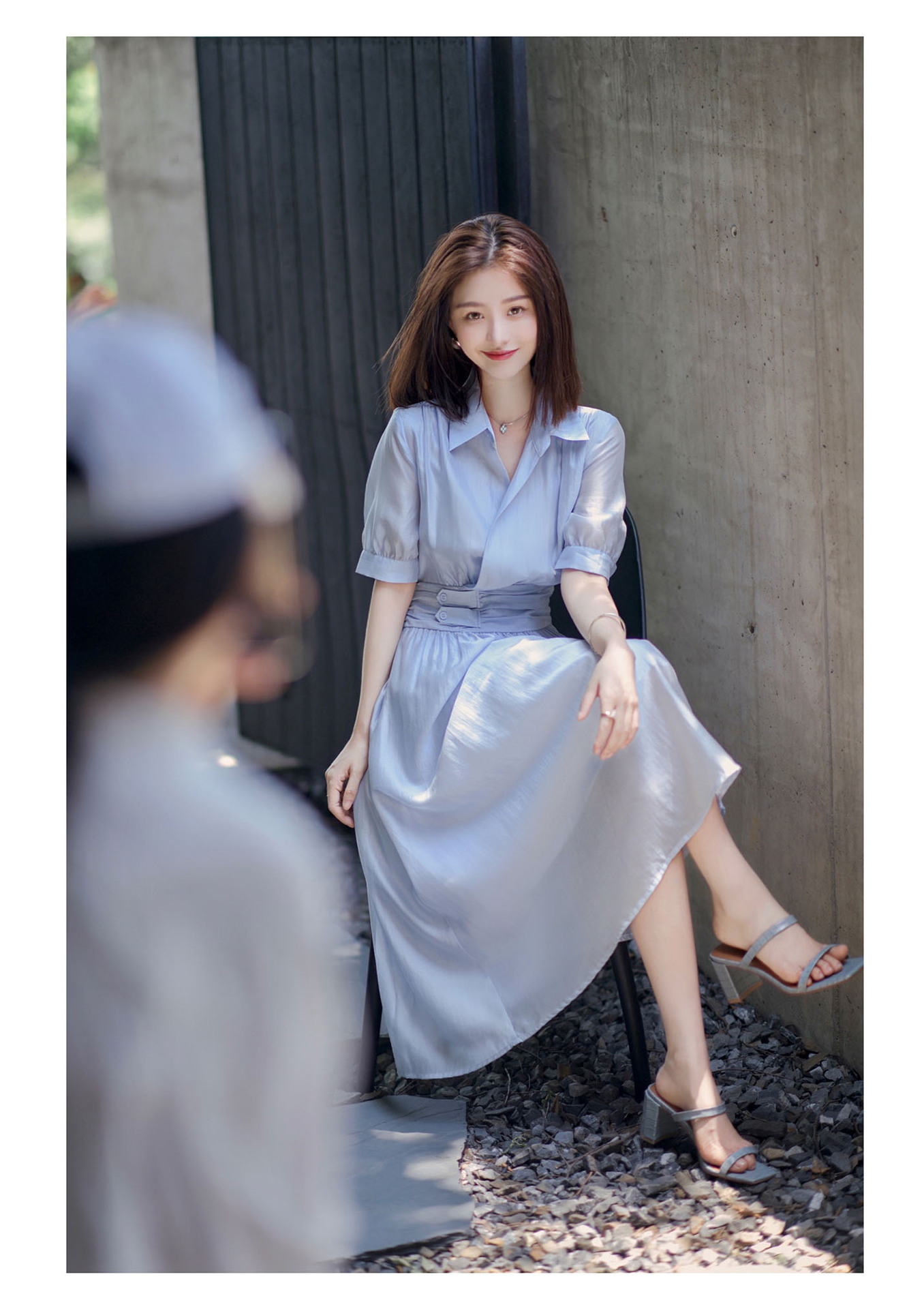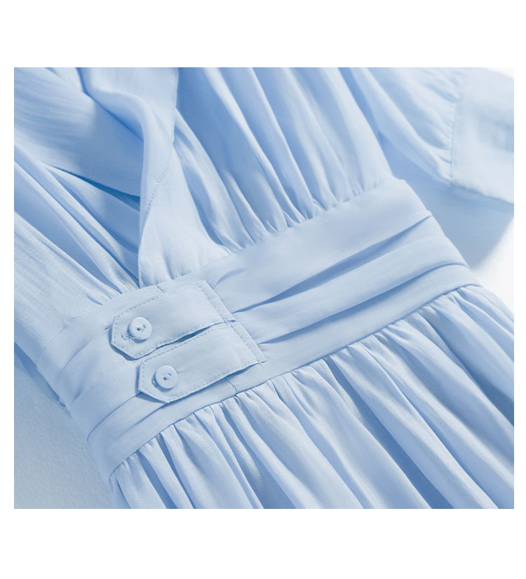 标题:2022夏新作ワンピース女性フレンチシンプルピュアカラーウエスト丸襟半袖ロングスカート