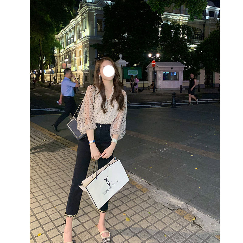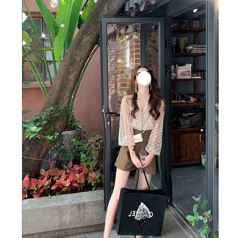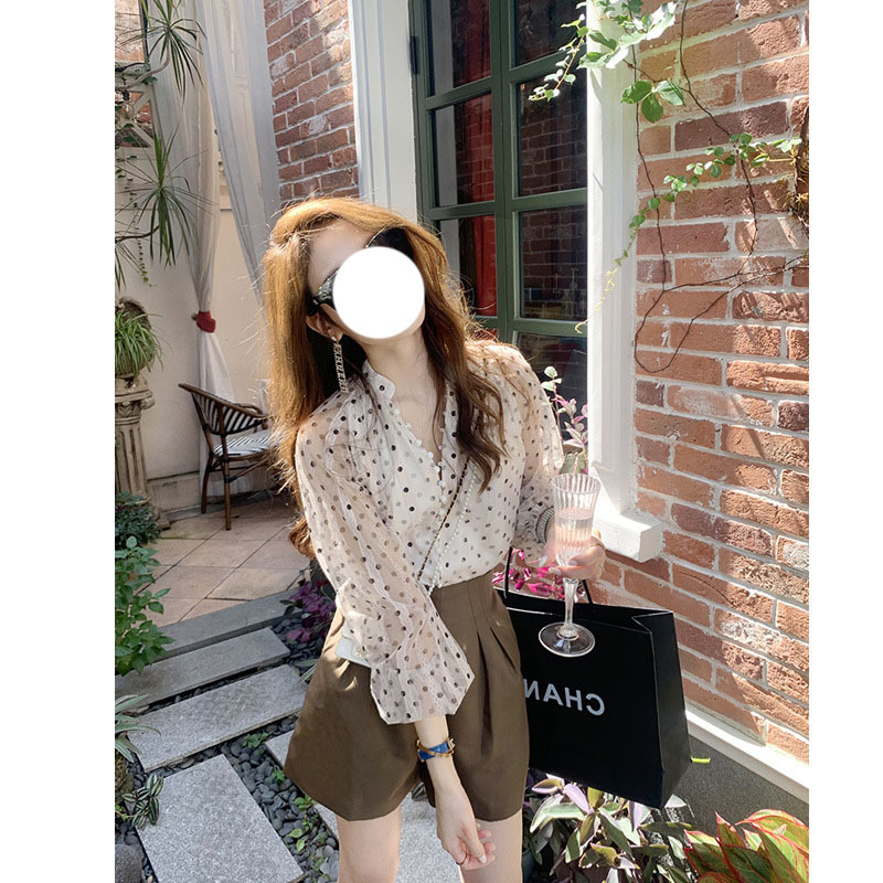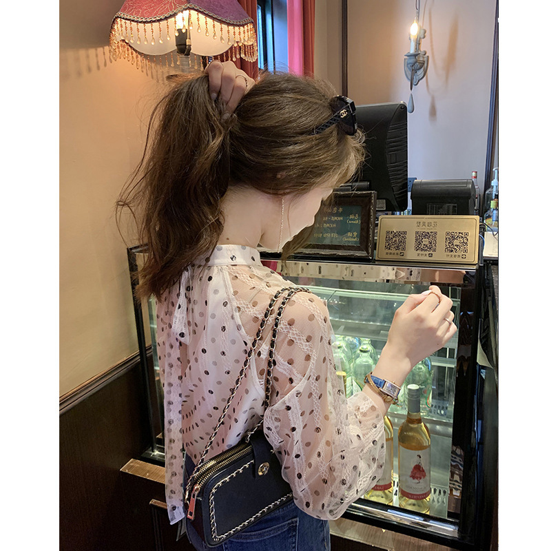 标题:波点蕾丝雪纺衫女2022春季新款雪纺上衣长袖气质温柔奶甜上衣小衫