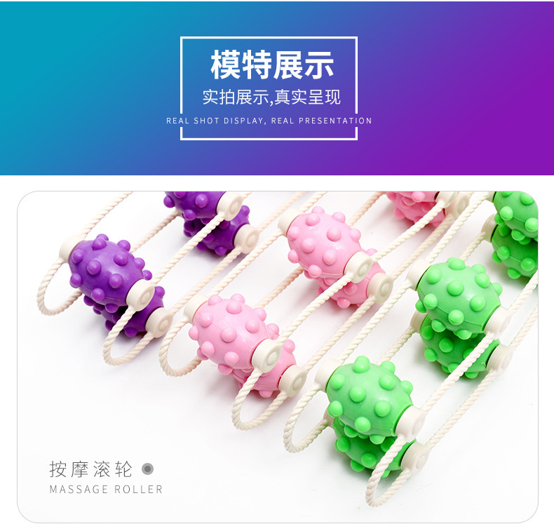 标题:手动滚轮家用多功能腿部按摩器实心颈肩腰部按摩器 拉背条按摩器