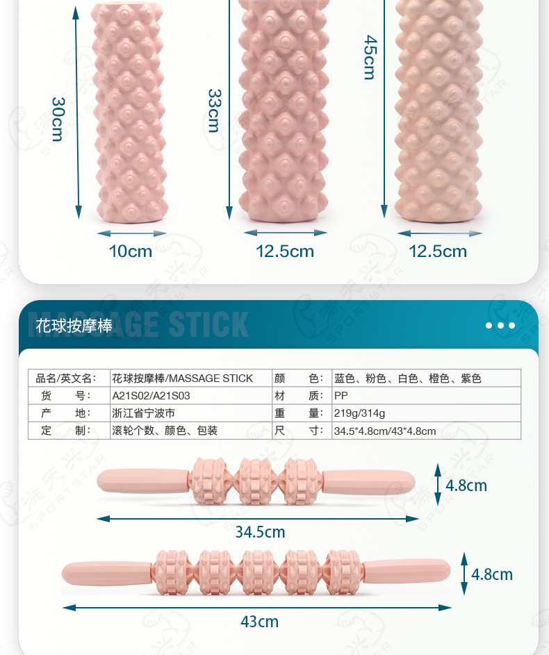 描述:产品类别:瑜伽柱,品牌:满天兴,规格:45cm浮点粉+刺球按摩棒肉粉+6cm筋膜球肉粉,45cm浮点粉+刺球按摩棒淡粉+6cm筋膜球淡粉,45cm浮点粉+刺球按摩棒玫红+6cm筋膜球玫红,45cm浮点粉+花球按摩棒粉+6cm筋膜球肉粉,45cm浮点粉+花球按摩棒白+6cm筋膜球白,45cm浮点粉+可调节按摩棒粉+6cm筋膜球肉粉,45cm浮点粉+可调节按摩棒玫红+6cm筋膜球玫红,45cm浮点蓝+刺球按摩棒淡蓝+6cm筋膜球淡蓝,45cm浮点蓝+刺球按摩棒天蓝+6cm筋膜球天蓝,45cm浮点蓝+花球按摩棒蓝+6cm筋膜球淡蓝,45cm浮点蓝+花球按摩棒白+6cm筋膜球白,45cm浮点蓝+可调节按摩棒蓝+6cm筋膜球天蓝,货号:XA22S01,产地:浙江宁波,适用场景:跑步运动,健身器材,保健按摩,健身美体,主要下游平台:ebay,亚马逊,wish,速卖通,独立站,LAZADA,主要销售地区:非洲,欧洲,南美,东南亚,北美,东北亚,中东,有可授权的自有品牌:是,是否跨境出口专供货源:是,专利类型:无,外贸出口认证:无,质检报告编号:无,图案:无,