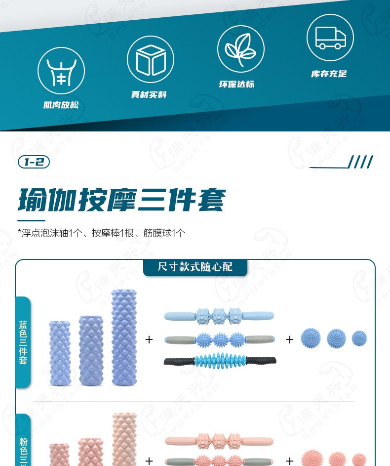 标题:瑜伽柱套装按摩棒筋膜球肌肉放松瘦腿滚轴滚轮按摩神器泡沫轴套装