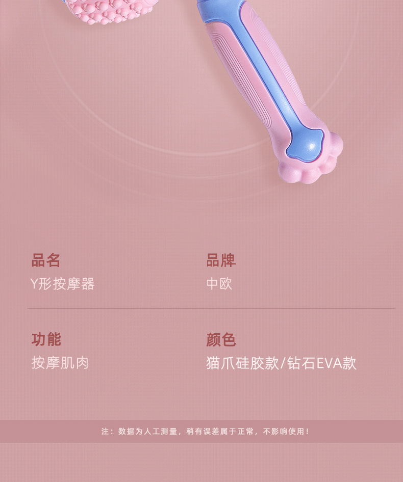 描述:产品类别:Y型按摩器,品牌:中欧,规格:猫爪硅胶款,钻石EVA款,货号:Y型按摩器,产地:中国,适用场景:保健按摩,健身美体,是否跨境出口专供货源:否,专利类型:无,外贸出口认证:无,质检报告编号:无,图案:无,