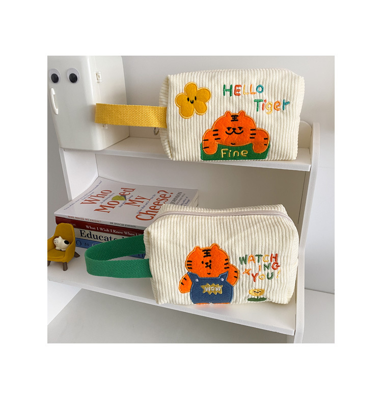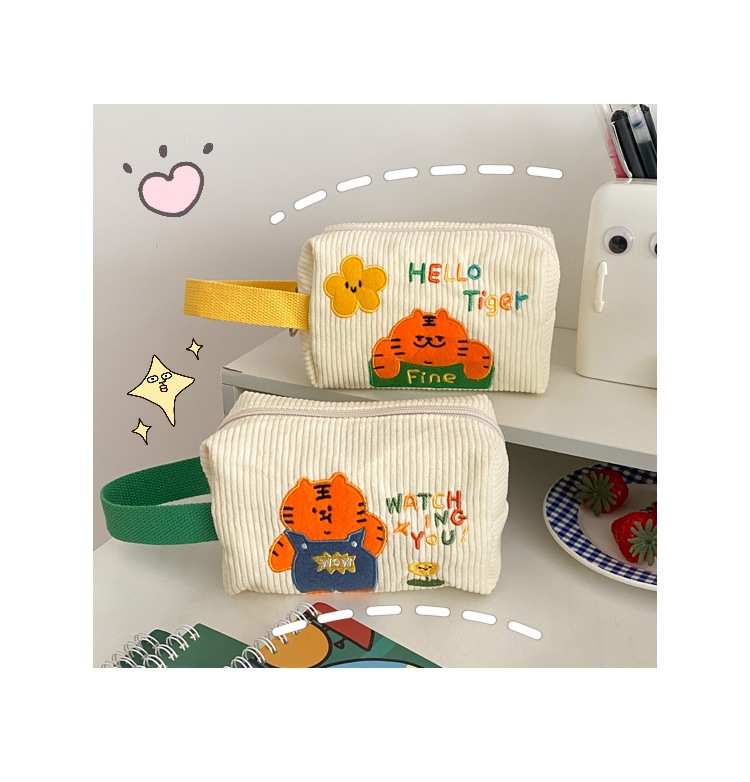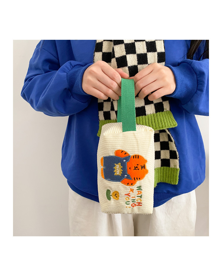 标题:耶語/新作トラ刺繍百合手提げバッグコーデュロイ収納袋ミニハンドバッグレディースバッグ
