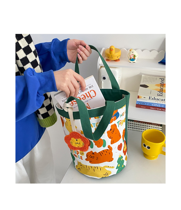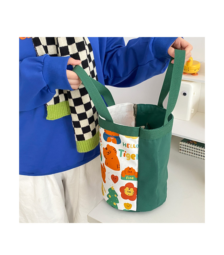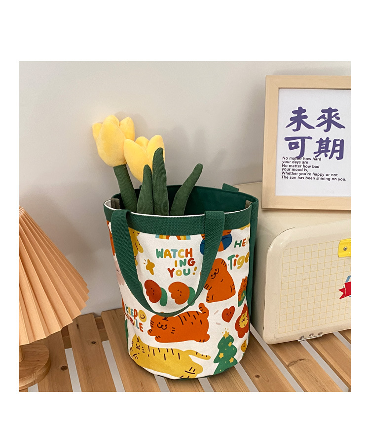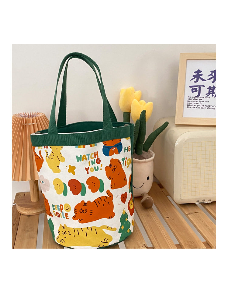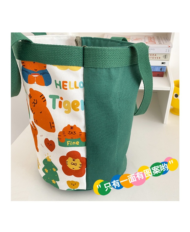 标题:耶語/かわいいキャラクタートラのプリント円筒手提げ帆布バッグバケツバッグバスケットバッグ手提げショルダーバッグ【版権金】