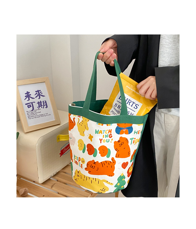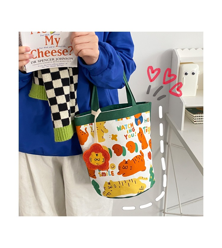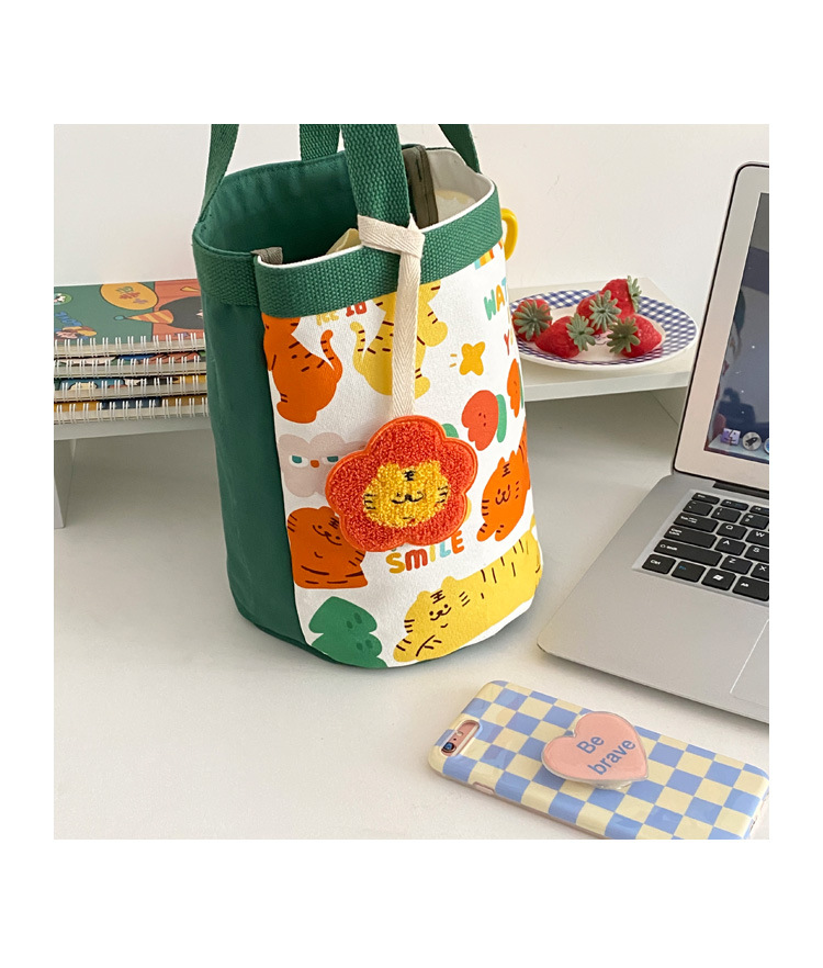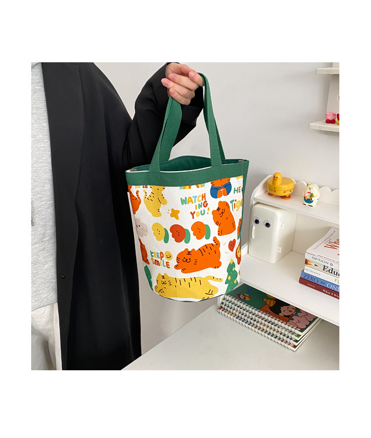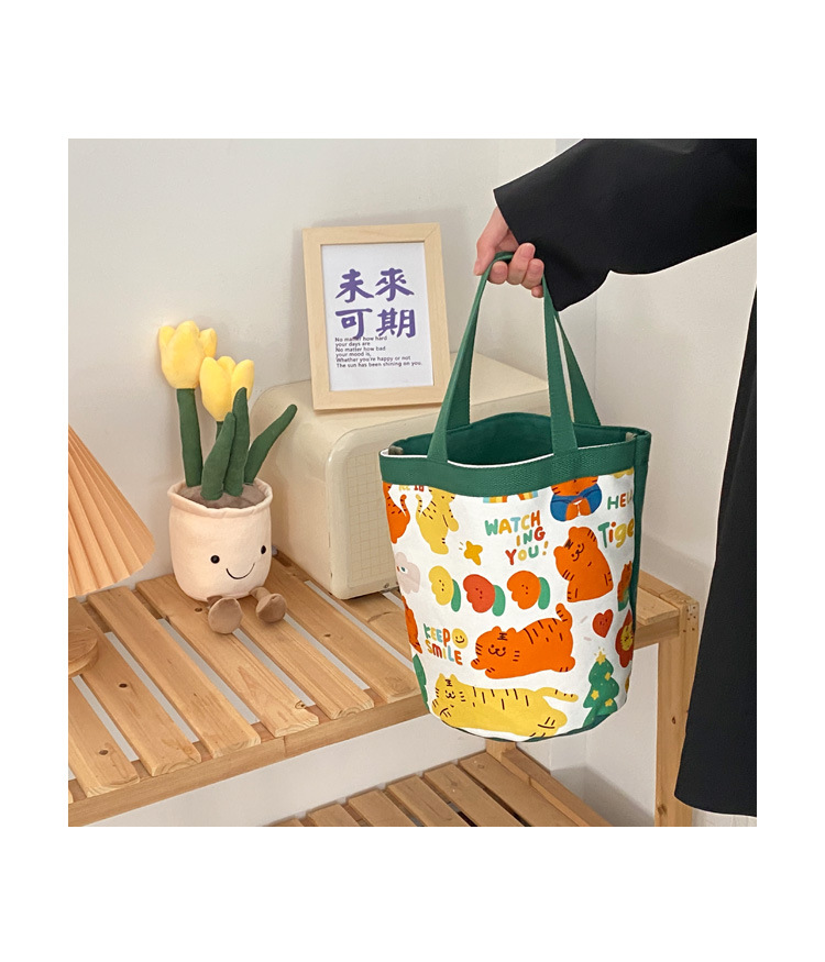标题:耶語/かわいいキャラクタートラのプリント円筒手提げ帆布バッグバケツバッグバスケットバッグ手提げショルダーバッグ【版権金】
