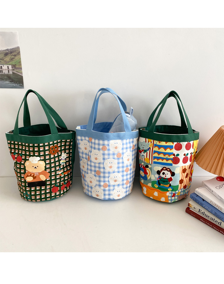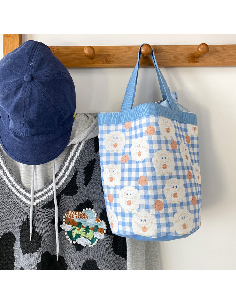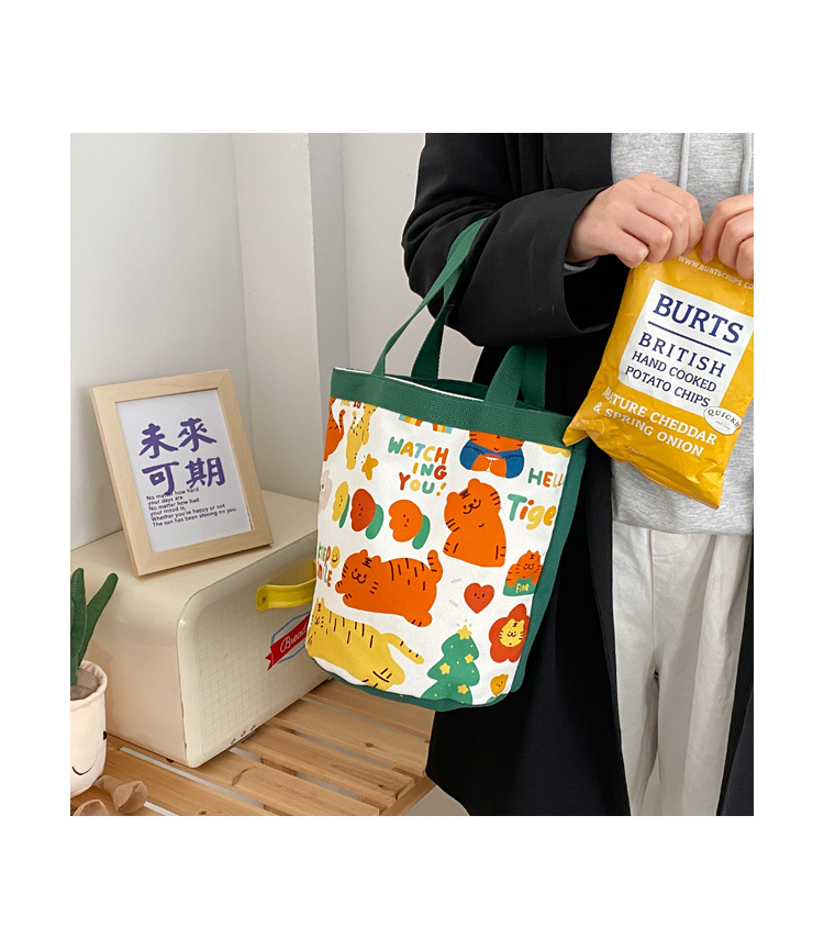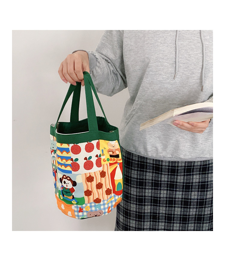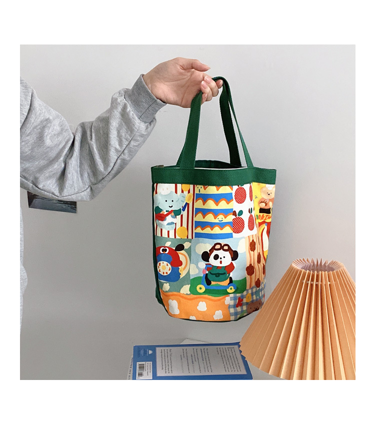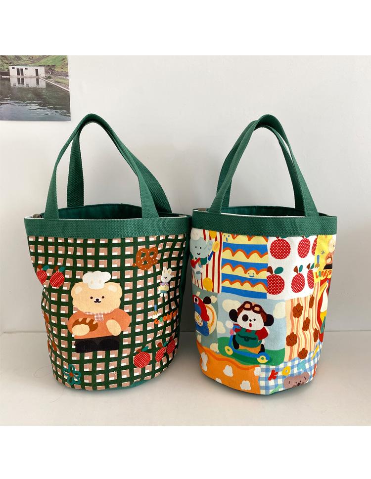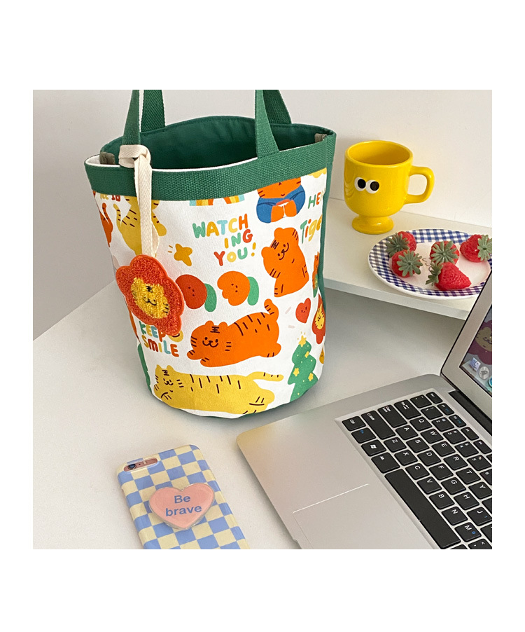 标题:エレ語/カートゥーンプリントの円筒バッグ手提げ帆バッグ韓風乙女心バケツバッグ