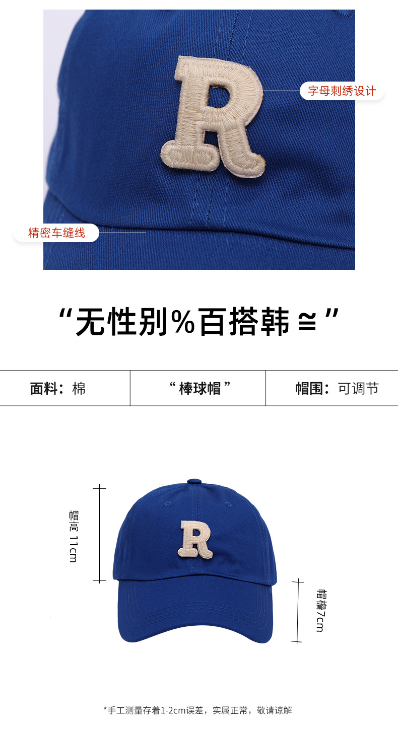 标题:【R标】棒球帽韩国显脸小百搭防晒帽子女男韩版鸭舌帽软顶批发女