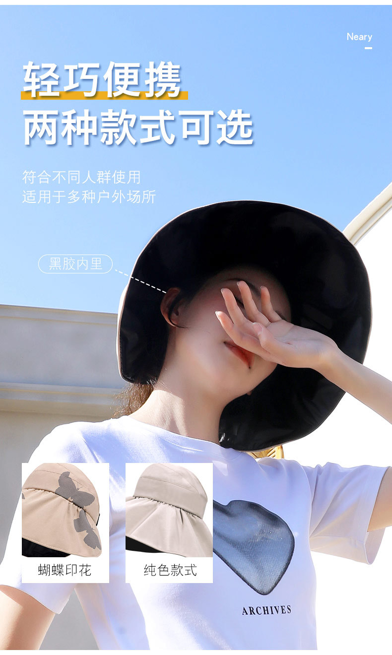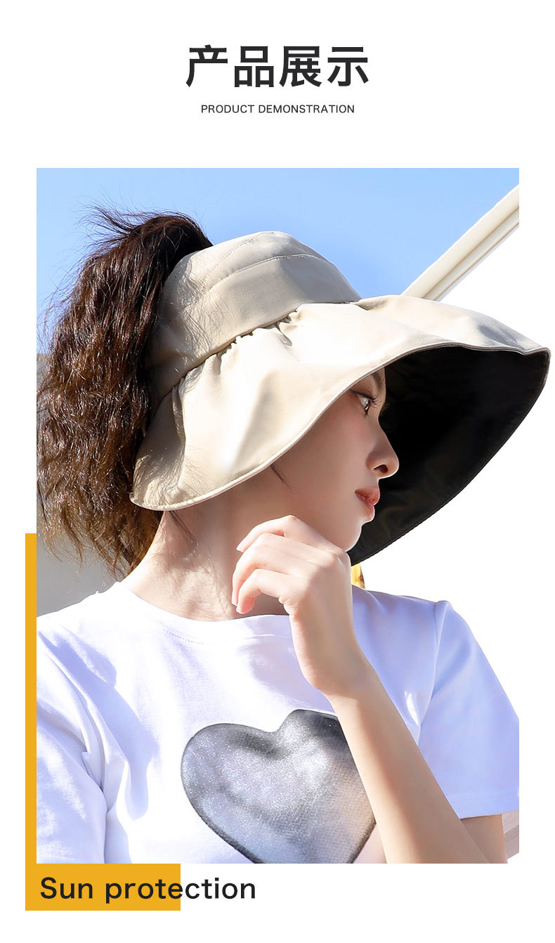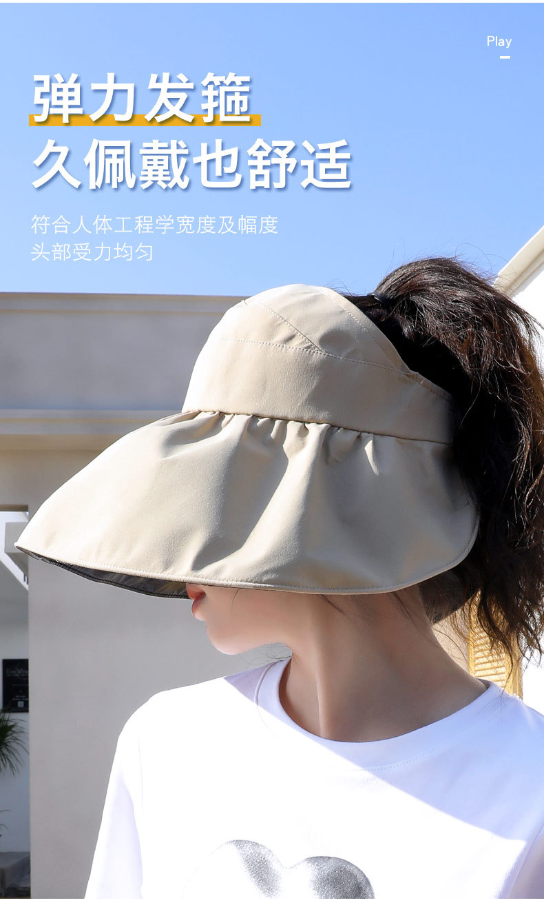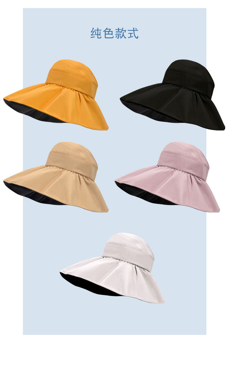 标题:夏季黑胶空顶防晒帽子女夏天大檐防晒遮阳帽可折叠渔夫帽春夏
