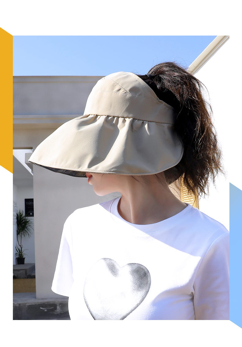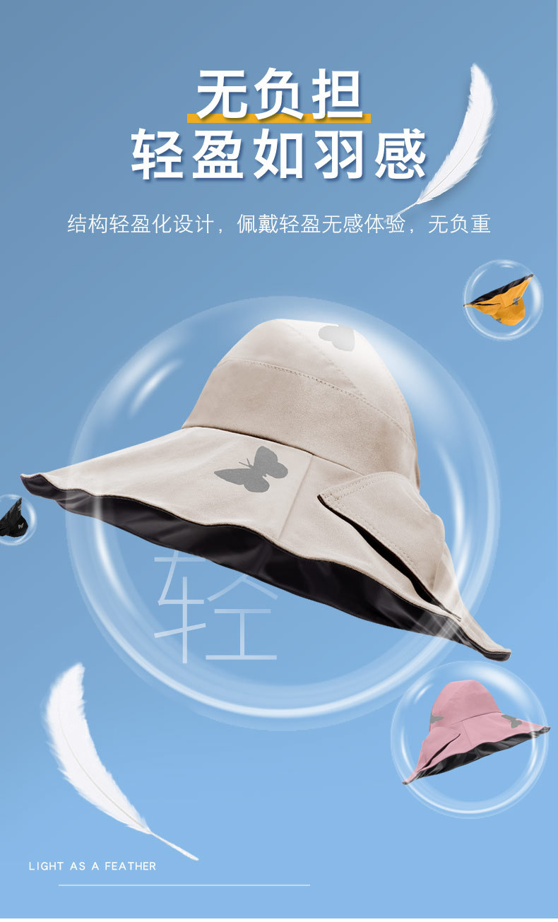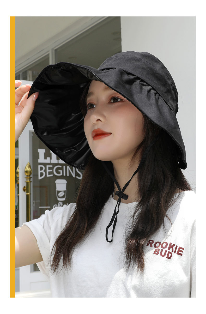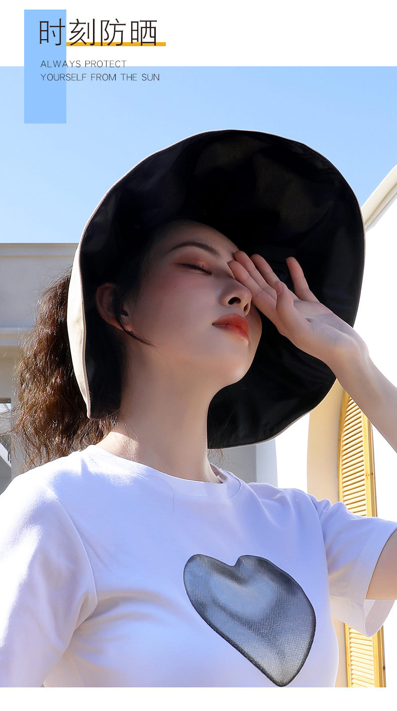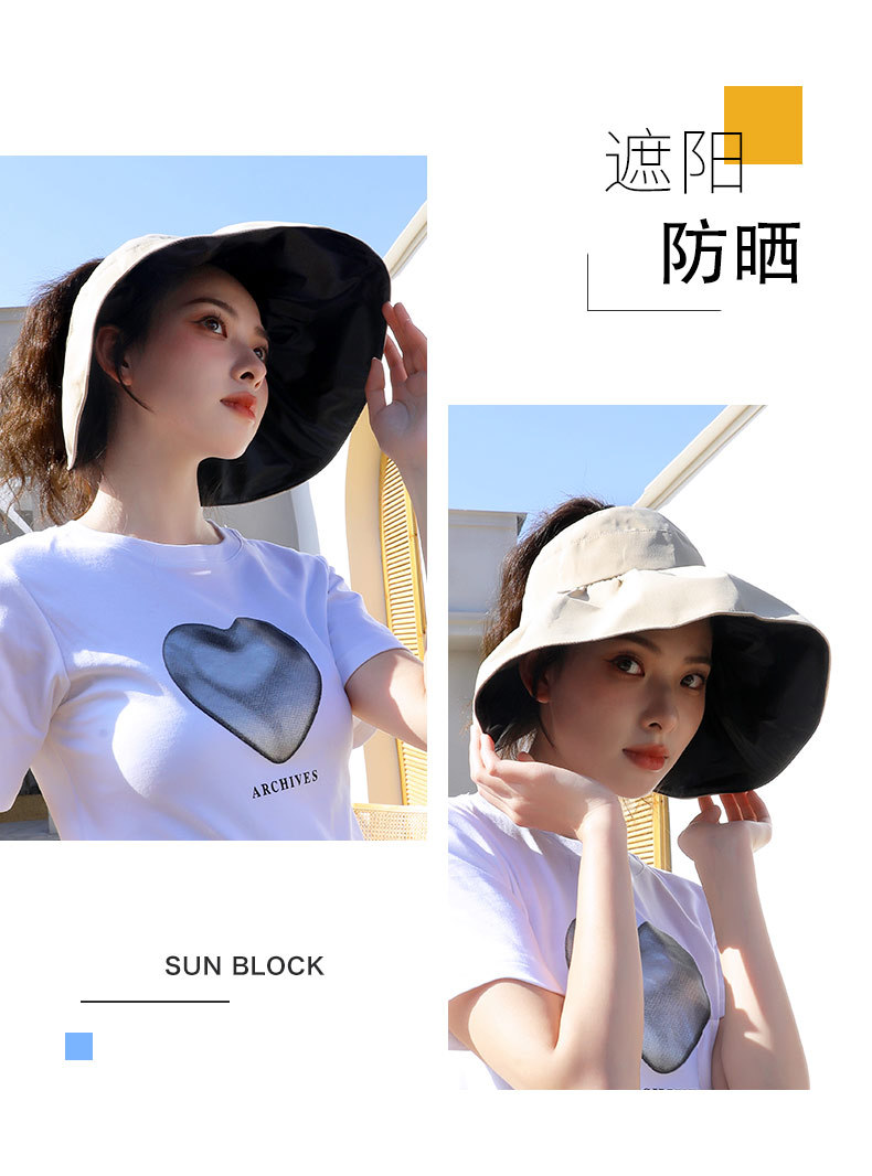 标题:夏季黑胶空顶防晒帽子女夏天大檐防晒遮阳帽可折叠渔夫帽春夏